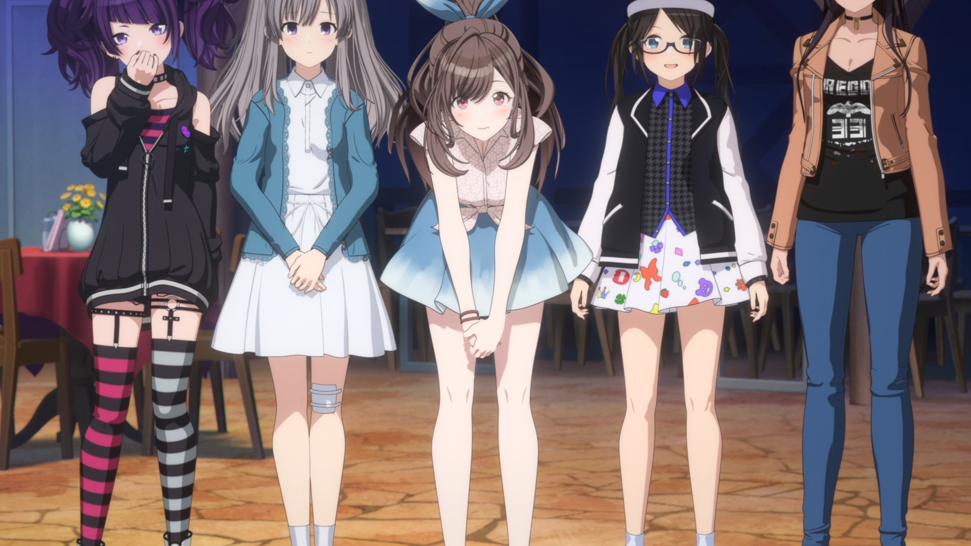 Уровень интеллекта у девчонок в среднем по клинике ниже плинтуса, ведутся на любой бред и охотно насыщают его смыслом: например «Задумайся, что значит “предвкушать будущее”» — и целую серию витают в облаках. Возможно, это скрытая ирония: только настолько тупые девчонки могут заниматься такой парашей и относиться к этому серьезно. Точно такая же у них мотивация: «Хочу быть знаменитой, хочу приносить людям радость». Тонкостей не знаю, но «студия 288» меня возвращает к книге Поливанова «Ветка сакуры», где говорилось о том, что идолы работают наизнос и меняются как перчатки. Собственно, «группы» называются «unit», и у них всех порядковый трехзначный номер. Уж до чего вакуумно-пустая анима, но умудрились втюхать культивирование рабовладельческой сущности работы айдолов: девки чем-то заняты с утра до вечера каждый день и еще совмещают это с подработкой, и подрабатывающие ставятся выше ступенькой, чем просто школьницы. И главное... а чего ради всё? Сказать, что песенки здесь паршивые, это ничего не сказать. Просто мерзость. Прям диссонанс в голове: из серии в серию ноют, какие тяжелые тренировки, делают какие-то замечания друг другу, заявляют намерения стать лучше... а на выходе какие-то обезьяньи танцы, дерьмовая инструменталка и дерьмовый вокал. Короче, с серьезной миной лепят пули из говна.