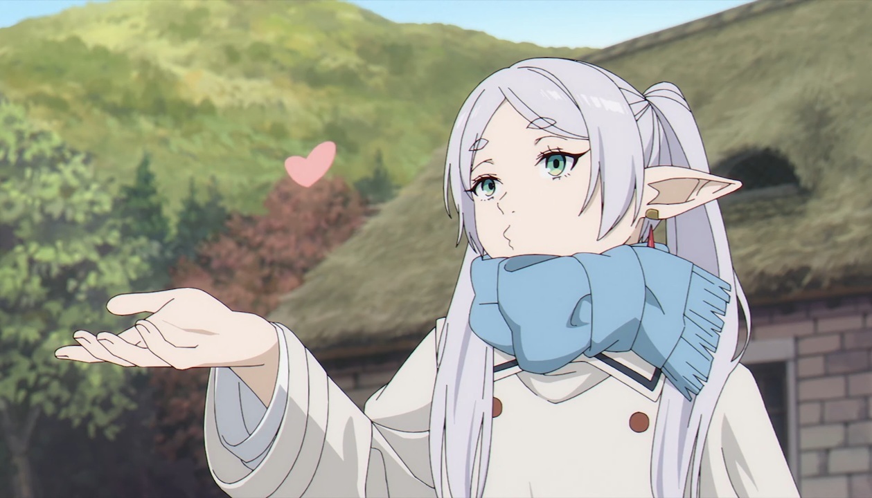 Бабушка Фрирен - лицо данного тайтла - эльфийка. Изначально выглядит холодной и отстраненной. В процессе показывают измененя в восприятии людей. В компашке своих друзей она стала более... раскрепощенней что ли.
