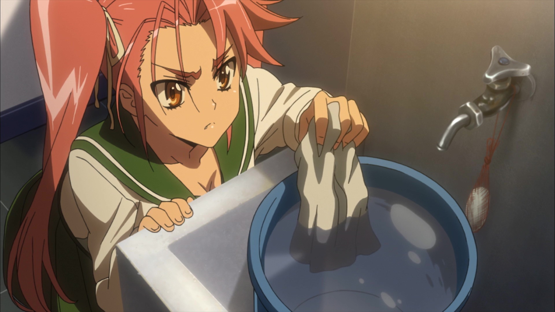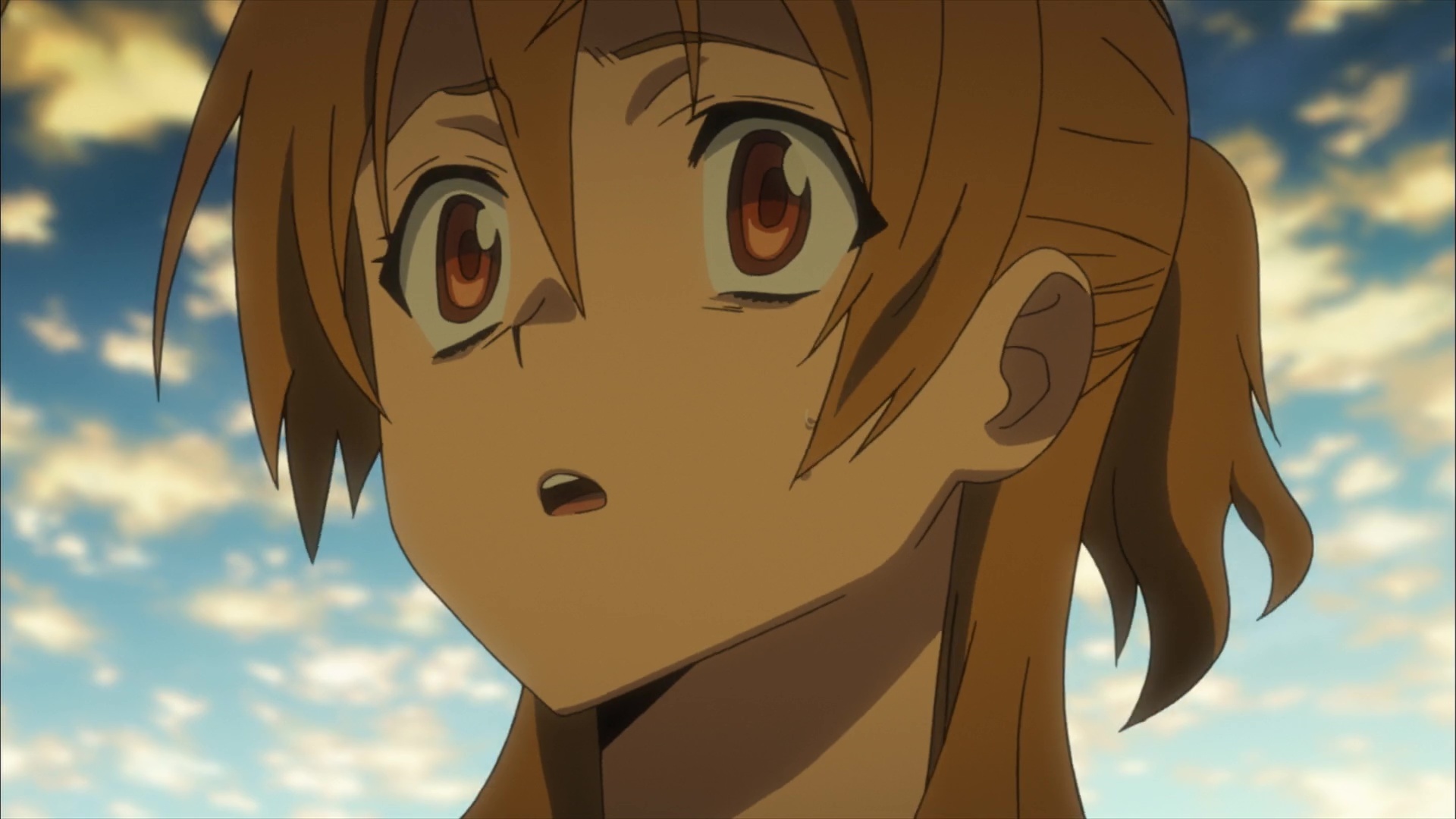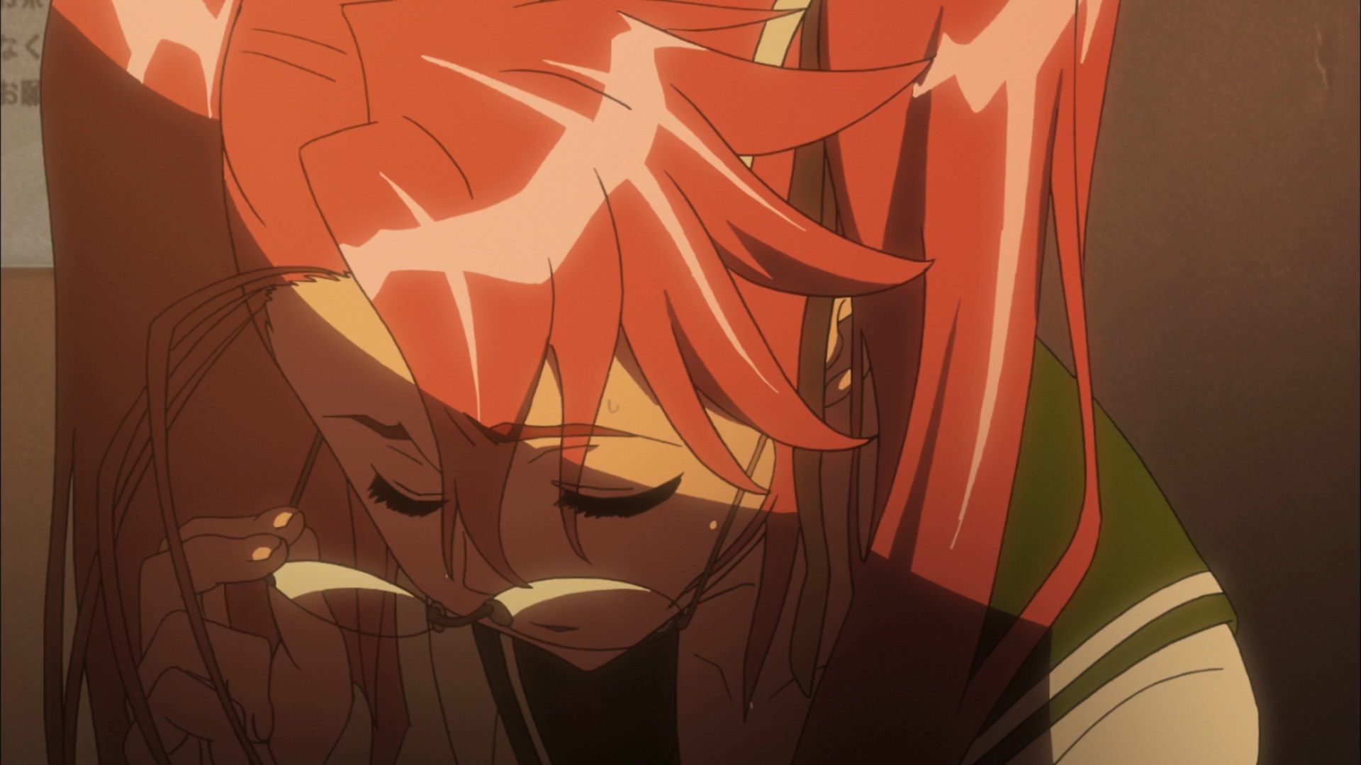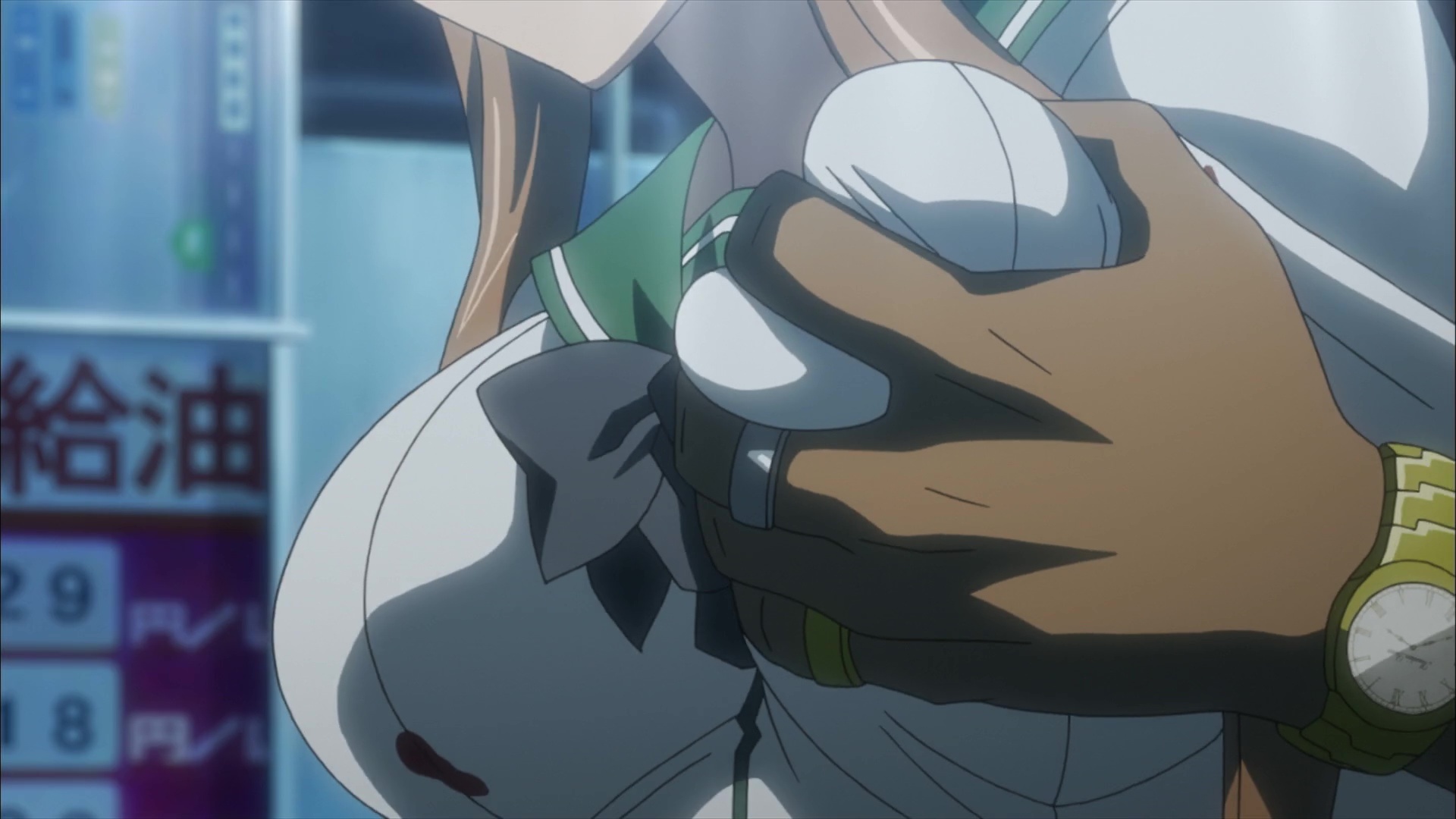 Атмосфера и визуал — 8.7/10. Здесь создатели хотя бы постарались. Зомби выглядят мерзко и убедительно: гнилые лица, разлагающиеся тела. Мрачные, разрушенные города, полные отчаяния и хаоса -> ощущение апокалипсиса передано великолепно. На фоне всего этого аниме иногда выдаёт удивительно красивые виды: закаты, освещённые кровавыми отблесками, или мрачные силуэты зомби на горизонте. Пули летят, и грудь летит тоже, боевые сцены динамичны, сочные. Но всё это сопровождается излишним акцентом на… Эээ, «bounce physics». (Привет, oppai-чаны!).