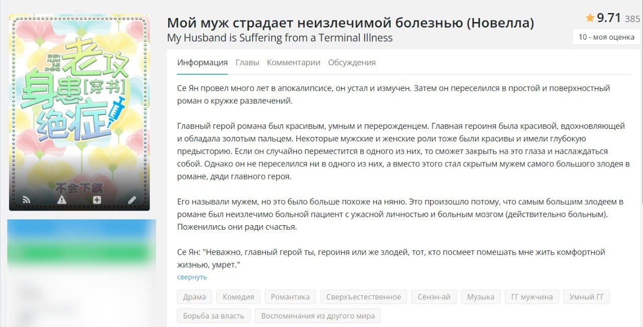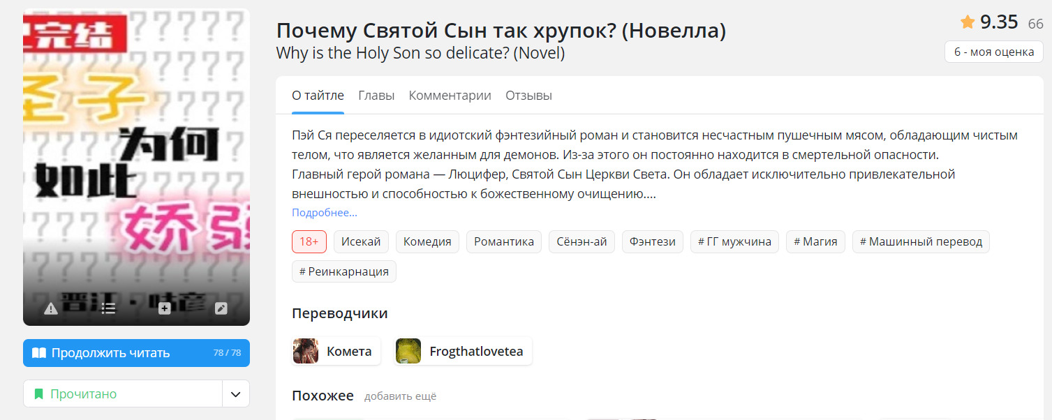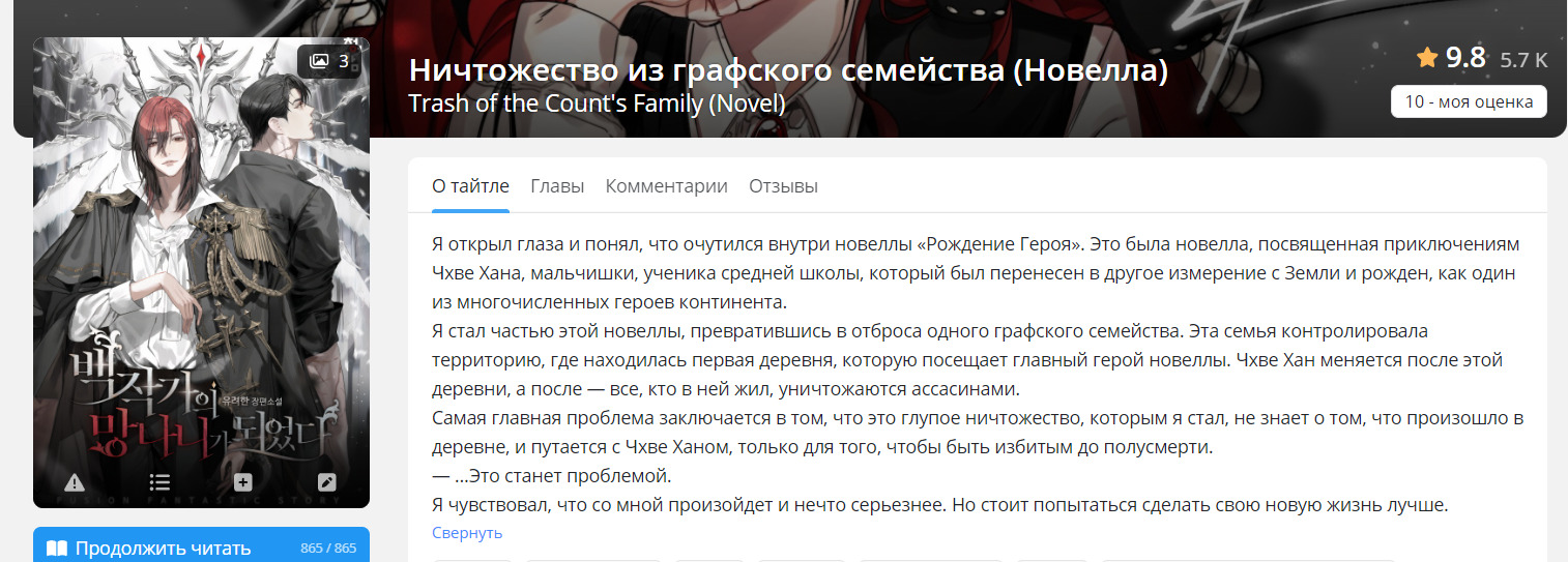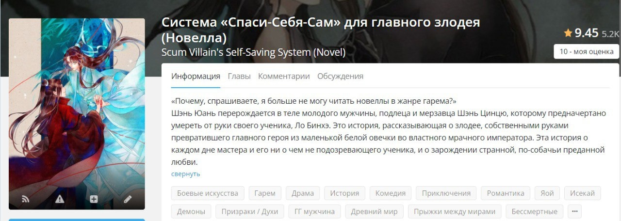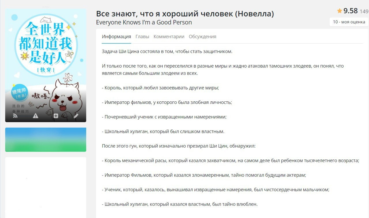 У многих новелл из данного списка нет хорошего перевода до конца, нооо, ахахха, можно перейти на англ сайт и с помощью перевода страницы дочитать, а еще многие новеллы из списка я прочитала на Wattpad или на RanobeLib. Многие оценки не заслужено завышены))). Многие оценки при перечитывании я уже исправила, но по новой делать скрины не хочу.