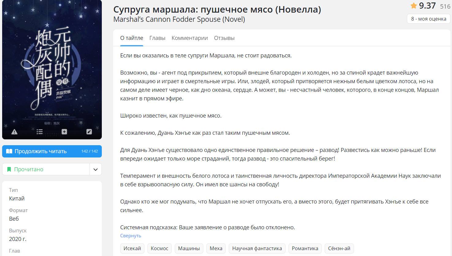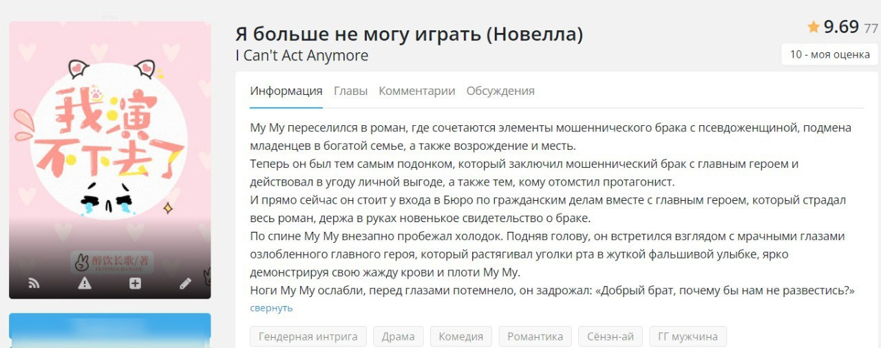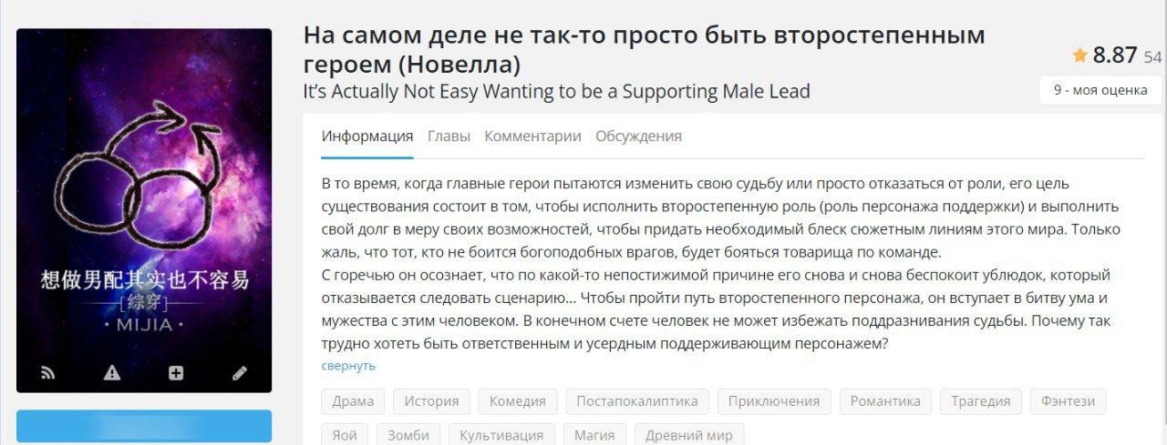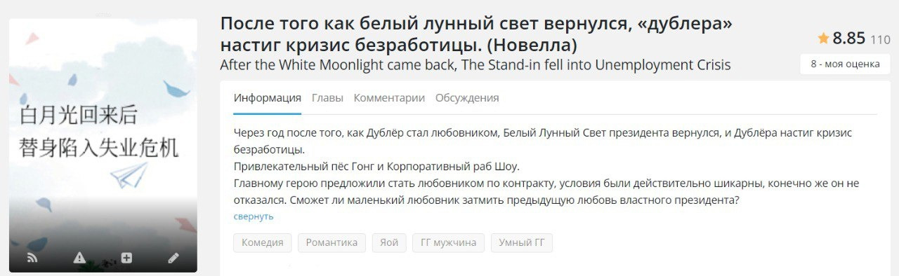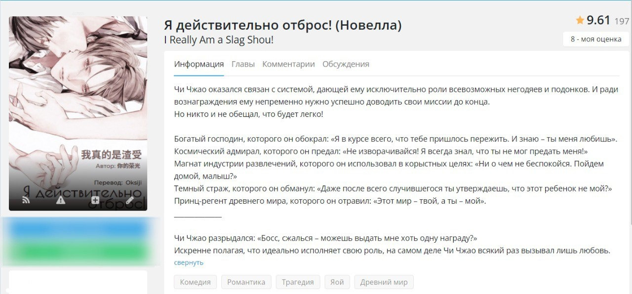 У многих новелл из данного списка нет хорошего перевода до конца, нооо, ахахха, можно перейти на англ сайт и с помощью перевода страницы дочитать, а еще многие новеллы из списка я прочитала на Wattpad или на RanobeLib. Многие оценки не заслужено завышены))). Многие оценки при перечитывании я уже исправила, но по новой делать скрины не хочу.