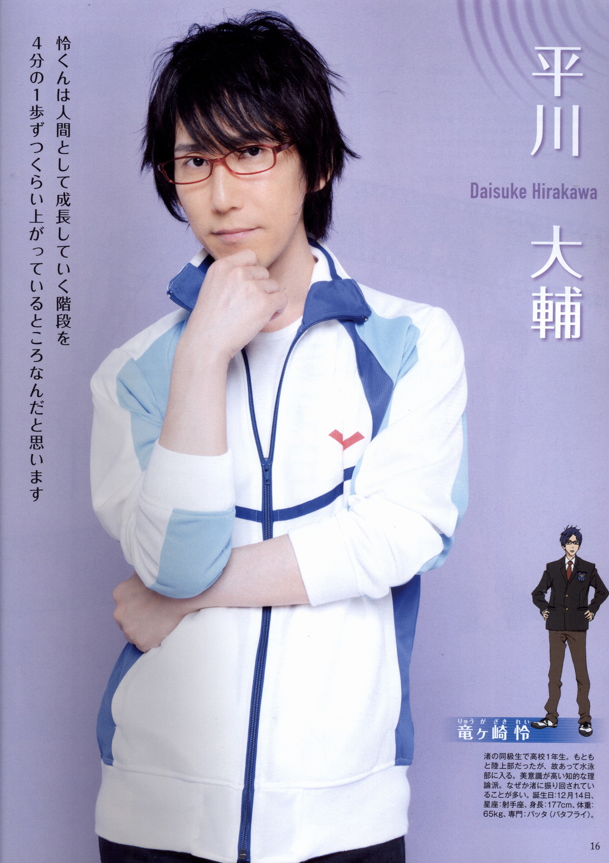 Настоящее имя: Daisuke Hirakawa (яп. 大輔 平川 Хиракава Дайсукэ) Псевдоним: Тацуя Хираи (яп. 平井 達矢 Хираи Тацуя). Использовал в озвучивании хентайных работ День рождения: 4 июня 1973 года Место рождения: префектура Ниигата Рост: 167 см Группа крови I Знак зодиака: Близнецы (по новому гороскопу - Телец) Увлечения: катание на лыжах и сноуборде, кулинария Занятость: на данный момент является фрилансером Ссылки: Официальная страница - lantis.jp; Блог - ameblo.jp