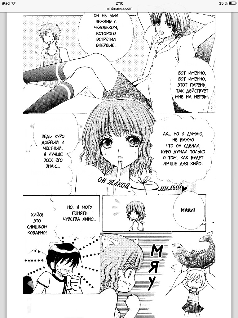 Мм...описание не соответствует самой манге. Ну...мне вообщем-то понравилось. Я люблю читать мангу жанра романтика, но она часто раздражает своей банальность. Эта же простенькая, но была прочитана мною с легкостью и ни чем не напрягала в особенности ревностью героини, которую часто смешивают с тупостью и глупыми действиями.Сама Гг не тупая, не бесила