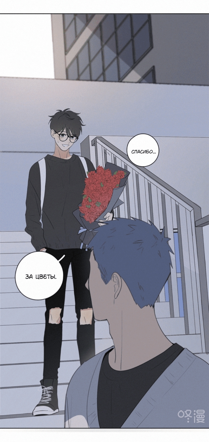 Ну и вот добрались к главной парочке этой маньхуи, так как на них держится всё, как только у них всё налаживается наступает конец. Ну и вот имеим весёлого, стойкого, самостоятельного парня, который не от кого не скрывает, что он так званый гей, и у которого есть свои проблемы с семьёй, так как те не воспринимают того всерьез, из-за ориентации. И второй, большой, но спокойный парень натурал. Вот знаете, ихние отношения были довольно странными на протяжении почти всей истории, так как они не совсем понимали друг друга.