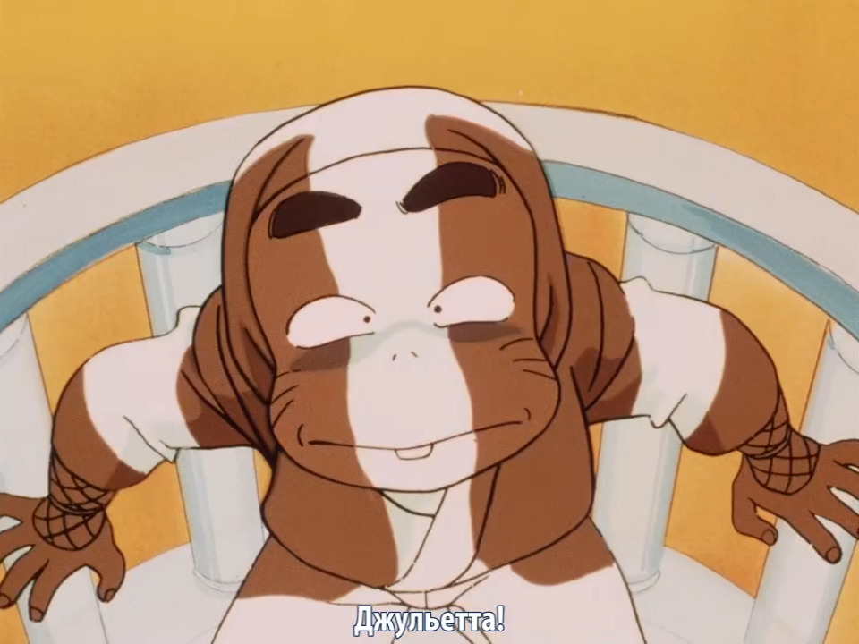 Играя роль Ромео, Ранма как и всякий раз придерживается главной задачи защищать Аканэ, причём на столько, что доходит до того, чтобы забрать у неё роль, подставив себя под удар.