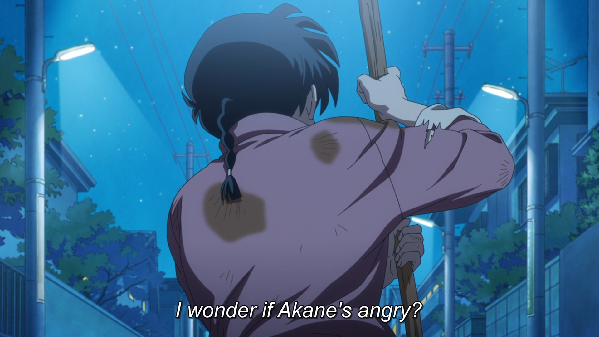 Показательная в плане развития отношений Ранмы и Аканэ, вспоминая первую серию, герои ссорятся, но теперь по детски.