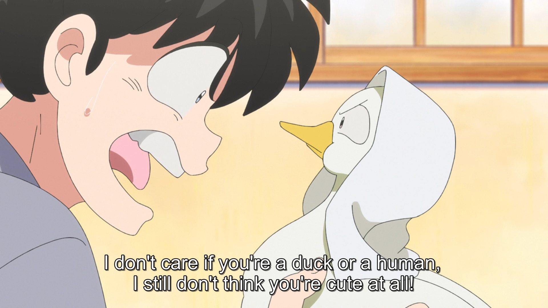 Более того, Ранма произносит реплику, которая становится ещё смешнее после, когда тот готов взять в жёны Аканэ(утку)