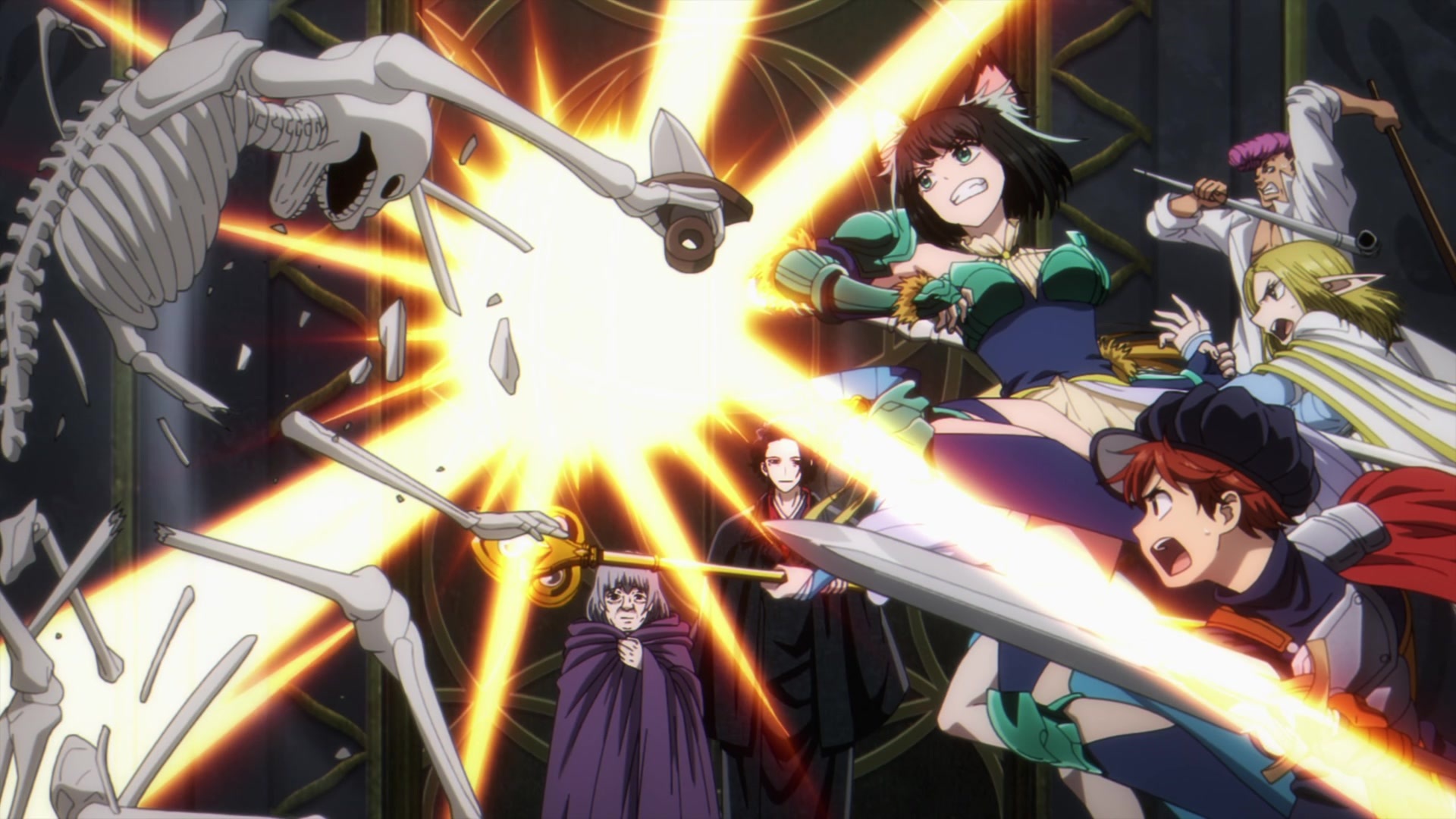 Рисовка стандартная, но не ленивая. Когда нужно показать красоту — авторы её показывают. В остальном они стараются нивелировать малые бюджеты и сделать красивыми не только задники, но экшен-сцены и крупные портреты героев. И у них получается. Рисовку и анимацию здесь отлично отражает фраза — дёшево, но сердито. То есть понятное дело, что особо удивлять тут нечему, но всё выглядит хорошо и не расстраивает. Отдавая должное тайтлу скажу, что в нём будут и красиво сделанные драматичные сцены и прекрасно поставленные экшн-зарисовки. Несмотря на одинаковые доспехи героев и врагов — в сражении всегда ясно кто с кем борется.