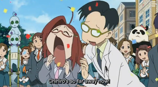 К первой половине сериала у меня особых претензий нет, кроме как к аутистичности событий (но как мне кажется, ставка просто была сделана на подростковую ЦА). Если в таких же мрачноватых тайтлах типо ShigofumiСигофуми: Письма с того света и Kino no Tabi: The Beautiful WorldПутешествие Кино: Прекрасный мир происходит арка, персонажи и зритель грустят и делают выводы... то тут события просто происходят, люди просто делают всякие вещи. Ну, в принципе, как и в реально жизни - есть в этом некоторая аллюзия и разрыв шаблона. Та же серия с дамбой - зачем её было ломать ПОСЛЕ смерти монстрика-змейки? Везение людей при разрушении города в боях на уровне Girls & PanzerДевушки и танки.