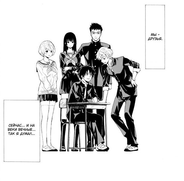 Конечно шаблонами нас не обделили, но все же вполне неплохо. У всех есть страшные секреты и мы понимаем, что дружба не такая уж и крепкая. Единственного кого я не подозревала вообще - Сибэ Макото.