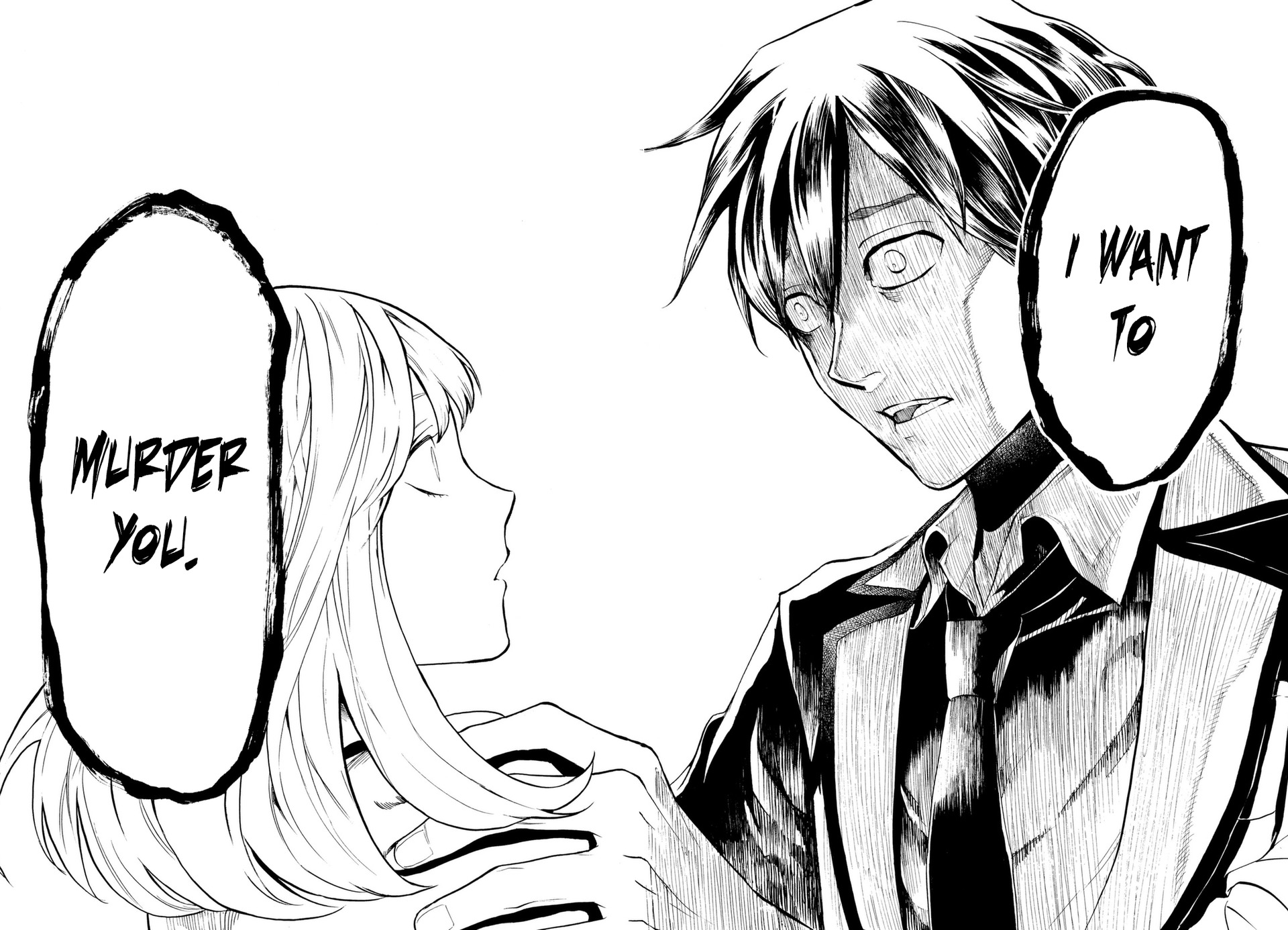 Существует болезнь, которая заставляет человека,в которого ты влюблен,хотеть убить. Наш главный герой собирается признаться и тут он понимает, что с ним то-то не так. Также он не единственный кто заражен. У каждого такого больного есть особенность, я пока не разобралась в чем именно идет отбор, но это отличие помогает убить вашу любовь, у нашего гг это глаза. Также они обладают нечеловеческой силой, что тоже улучшает поимку жертвы.