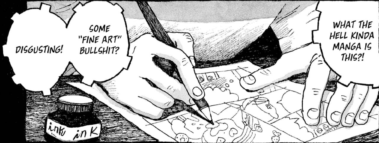 Oji Suzuki переносит нас в мир вечных сумерек. В состояние, с одной стороны, характеризующееся пограничным отношением света и тьмы (так ловко используемым автором визуально), и распадом, разложением, с другой. Спичка воспламеняется - неуловимое, непредсказуемое свечение дарует нам изображения, произвольно гаснет, ведь затвор никем не контролируется - что-то сохранится, что-то нет, из-за дифракции останутся искажения, огоньки могут случайно сжечь что-то очень важное. Здесь нет эффекта Пруста, где бы определённый триггер запускал бессознательный процесс воспоминания визуальных образов или ощущений, здесь отсутствует Время, Протяжённость Бергсона. Вместо типичного Хроноса, культивируемого западным искусством, имеется динамичная параллельность множеств областей, наполненных памятью как вспышками и затуханиями сенсаций. Манга, как возможность нонвербального медиума, позволяет использовать тени ("черный цвет") как первичный элемент, а свет ("белый цвет") как вторичный - тем самым меняется приоритет всего сторителлинга. Любая сенсация, любое событие - непредвиденная случайность, когда как Ничто, отсутствие восприятия как такового - обычность, стабильность.