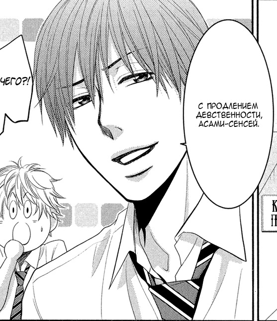 Между персонажами нет химии, героиня даже не удосуживается поразмыслить на тему, так ли ей нужен этот учитель. Их отношения выглядят абсолютно никак, вообще ничего их вместе не держит, они совершенно разные, и при этом из общего только школа и какое-то воспоминание, о котором героиня вообще ничего не помнит, и нафиг оно ей не сдалось. Они не ходят с учителем на свиданки, ничего друг о друге не знают от слова совсем. Любовный соперник учителя на фоне выглядит гораздо выгодней: он опытен, не глуп, где надо - чересчур умён, мудрости у него побольше, чем у сенсея, умеет поддержать и где надо проявить нежность, к тому же он ровесник и у него гораздо больше общего с героиней. Как можно верить в отношения главных героев, если на протяжении всех 4 томов персонажи размышляют над тем, как бы расстаться и что бы такого выбросить, чтобы наконец-то разойтись? Всё, что их ждёт при таком раскладе - развод через полтора года, делёжка имущества, срачи в суде и алименты. Пары второго плана уже интересней. Будь манга про одну из них - вышло бы гораздо качественней. Чего только стоит парочка Юки и Матиды, не говоря про раздолбая и младшеклассницу. Однако судьба оных, включая соперника сенсея, осталась неизвестной.