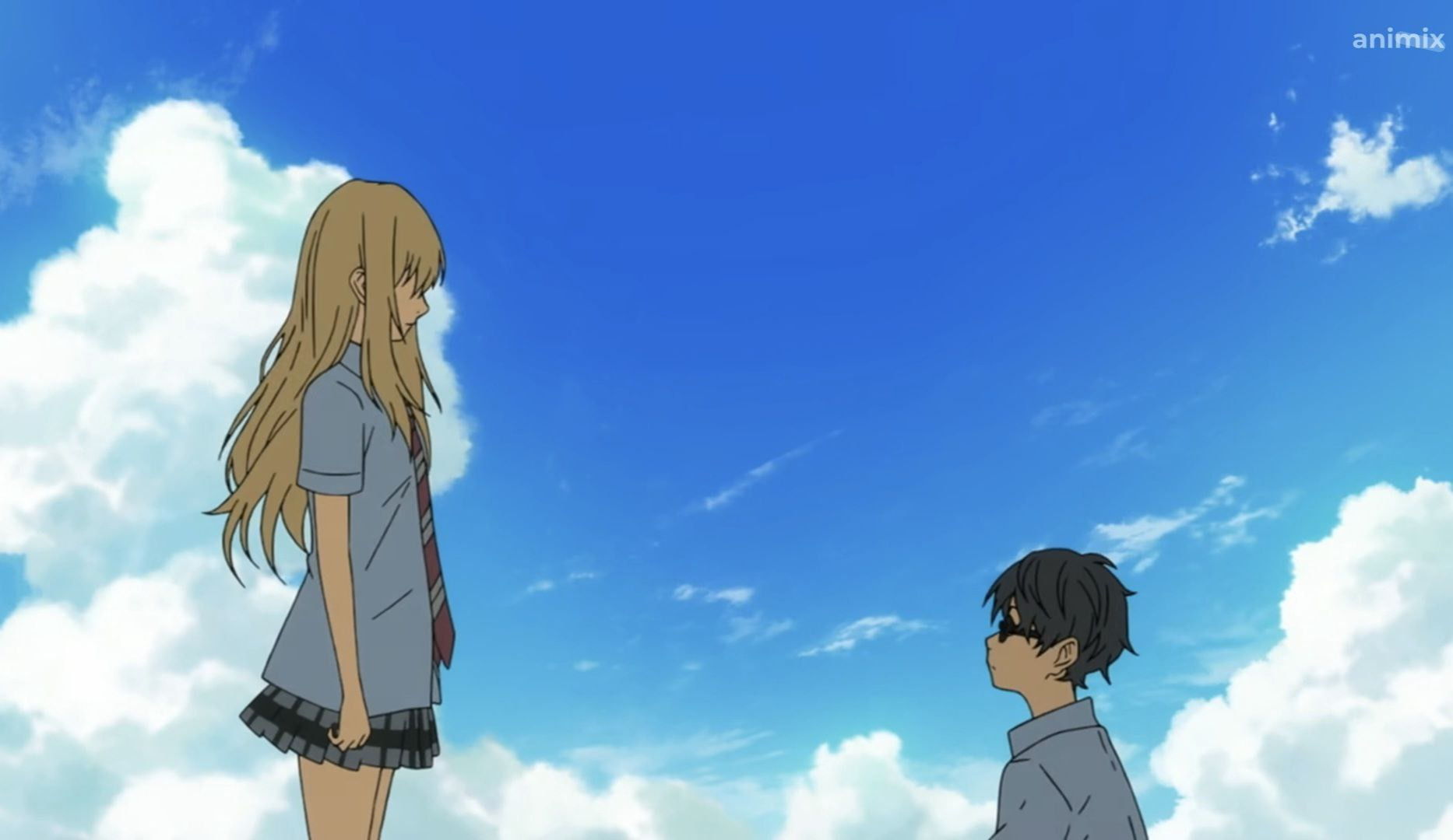 Косэй Арима сначала начал играть, потому что ему нравилось как играла его мать, потом в нем увидели талант и мать пыталась через него воплотить свои мечты, а после смерти матери у Аримы пропала причина играть.На самом деле очень грутсно, что за все аниме, он так и не начал играть ради себя, он всегда играл для кого-то.Может это и не плохо, если в этом и были его чувства и то, что он хотел донести, но наверное мне бы хотелось, чтобы он сыграл для себя.