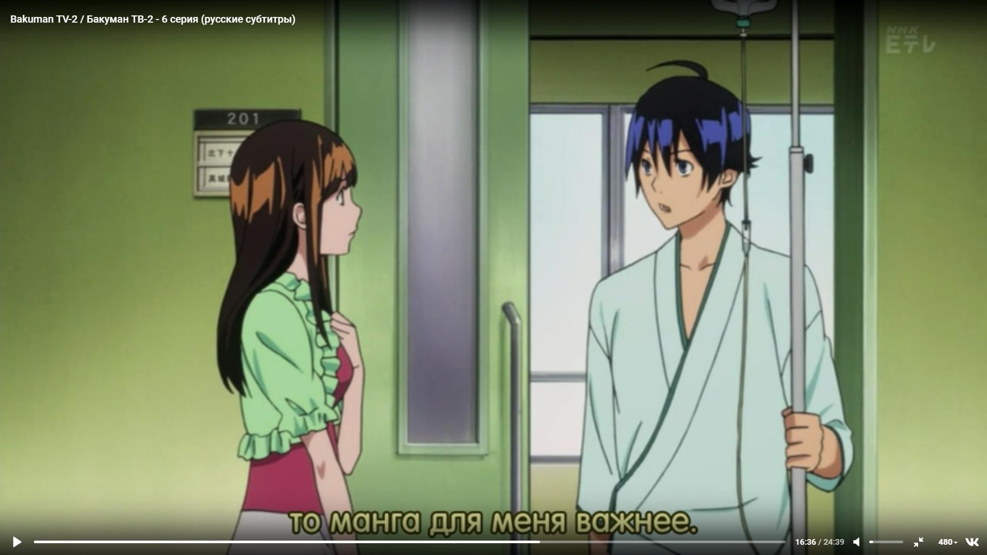@Eldeness@Imperatorus, Ах так ты еще на 6 бросил... зря, ведь второй как по мне интереснее. Как уже сказал ты слишком придираешься. Этот момент можно вполне адекватно оправдать тем, что он рисовал не перегружая себя, ведь все таки это не цемент тягать, нужно просто знать меру. Психологическая нагрузка от невозможности рисовать была бы гораздо хуже для его здоровья как и сказал доктор, учитывая упрямство гг это самое адекватное решение. Произойти по другому, тогда получилось бы глупо и персонажи бы не соответствовали прописанным характерам. Разве что матери в таких ситациях из за переживаний обычно теряют голову, способность адекватно мыслить и запрещают подобное. Но если учесть что после смерти дяди она не мешала своему сыну идти к своей мечте, то можно сделать вывод что она умеет здраво, не эгоистично мыслить и держать себя в руках, поэтому повела себя адекватно в этой ситуации (выражая протест из за своих переживаний, но не мешая пользуясь правами матери). Хотя если у тебя такое мнение на счет Код Гиаса и Врат Штейна и при этом десятка по Школе-тюрьме... думаю мы не найдем общий язык и пытаться в чем-то переубедить друг-друга будет бессмысленно.@Imperatorus@Eldeness, сейчас, вспоминая Бакуман через значительное время, могу сказать, что впечатления от первого сезона остались позитивные, симпатичные персонажи, интересный рассказ о далекой от нас жизни творцов манги и всей окружающей их среды, юмор.бросил же не только из-за последнего эпизода, а потому, что накопилось: главный герой, превратился в жалкого, ничтожного типа: отказал своей девушке в отношениях, ради рисования манги. и если бы ему было что сказать. нет! он рисует все, что угодно, чтобы стать первым в рейтинге журнала для мальчиков! ради этого свихнулся и чуть не сыграл в ящик.