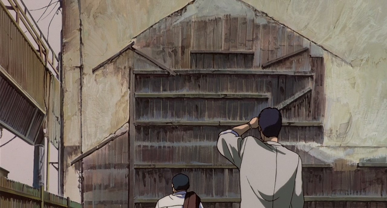 1) Гнетущую темную атмосферу тревожной неопределенности и болезненного ожидания. Она подчеркивается правильно расставленными Мамору Осии акцентами: отличные визуальные образы в паре сцен, какие-то мистические загадки, оставленные погибшим программистом, общий темный фон.