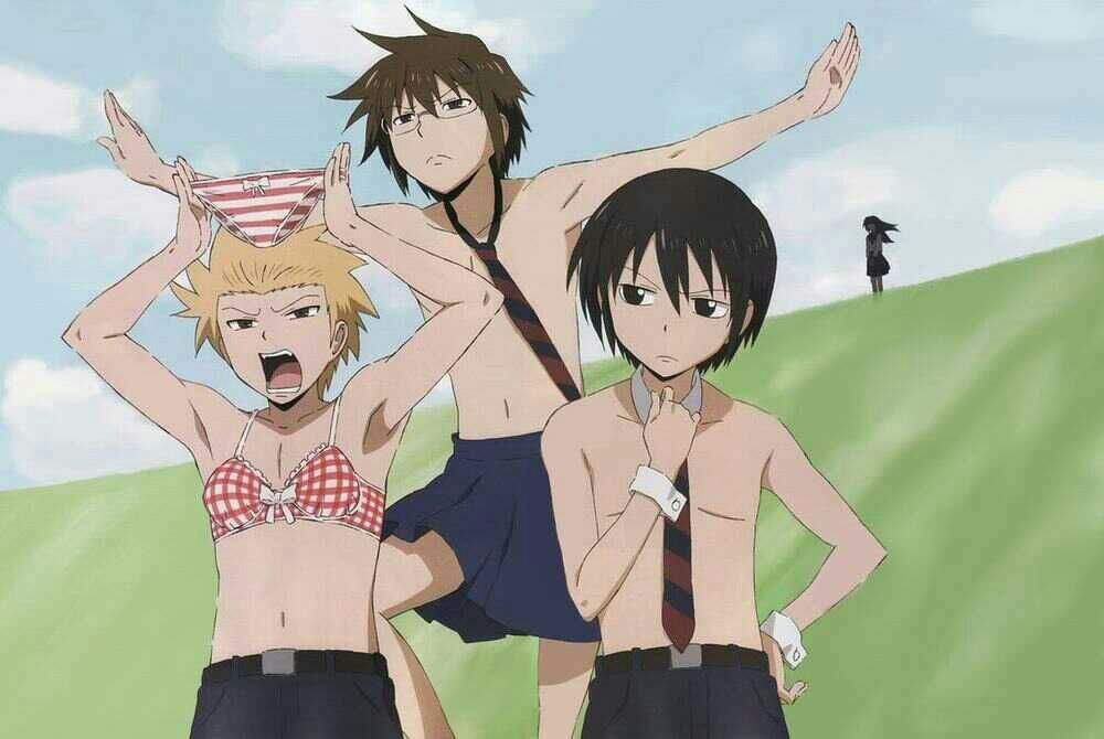 Что касается второстепенных героев, то они довольно простые в том плане, что обычно в шутках выполняют одну и ту же роль. Но из-за того, что эти роли довольно необычные, описать их одним-двумя словами достаточно сложно. Также нужно отметить, что некоторые герои придуманы специально под шутки, что очень заметно. Например, Мицуо. Этот парень будто бы специально добавлен в сюжет, чтобы ребята могли над кем-то искренне посмеяться. Главные же герои показаны очень живо. Дружба Хидэнори и Ёшитаке тянется из детства, и это очень даже заметно на примере Тадакуни, с которым ребята хоть и дружат, но относятся немного скептически. В целом, сама дружба здесь показана не хуже, чем в “Клубе идущих домой”, но на ней делается меньший акцент.