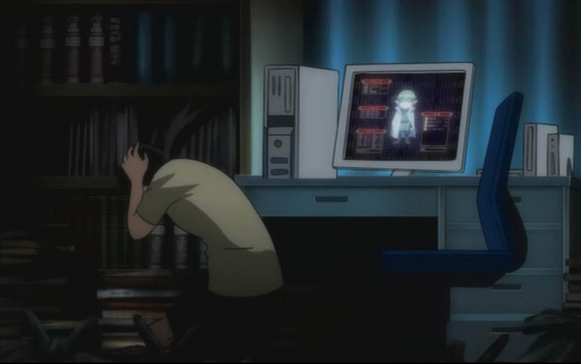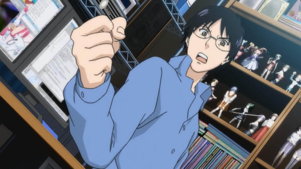 Тут проходит первая механическая связка. Автор отработал сюжет о хардкорном хикки и отбросил его. Далее идет сюжет об обычном молодом бездельнике (NEET (Not in Employment, Education or Training), желающем понравиться девушке и преуспеть в жизни быстро и без особого труда. Как? Например написать мега популярную хентайную игру. Почему именно хентайную? Тут еще один вставной мини сюжет о буднях социопатов, которые заменяют реальные отношения суррогатами и потому хорошо разбираются в хентае и порнографии. Сато выставляют абсолютным неофитом в этих вопросах, чтобы раскрыть сюжет от первого знакомства с материалом и до стадии охоты за школьницами с фотоаппаратом.