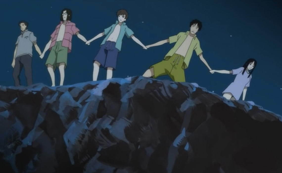 Отлично показан вред от форумов самоубийц. Общение в среде депрессивных маньяков приводит к индуцированию деструктивных мыслей. Жизнерадстный бездельник Сато, который хотел завести роман и поплавать в море, попав в такую компанию, вспоминает о бесцельности своего существования и загорается желанием умереть.