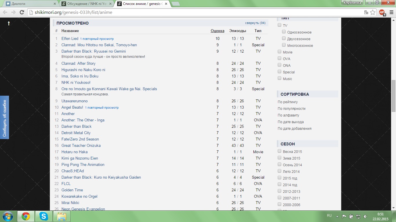 @Bear Pajama,@Lana21@genesis-033h, это было саркастическое высказывание?@a3e1@genesis-033h, молодец, что передумал) просто пересматривать я NHK не стала бы... А для меня это однозначный показатель,что до 10 не дотягивает... хорошо, но не восторг в отличии от Elfen Lied@a3e1,@Yukine@Конь Олега Газманова, едва ли.@Bear Pajama@Lana21,@Bear Pajama@Yukine, каждому свое. Да еще и под настроение.@Yukine,@genesis-033h, а как ты список анимы скрыл? И зачем?@Aniki,@a3e1@Конь Олега Газманова, 90 просмотренных тайтлов ему строить из себя знатока мешают@Bear Pajama@Aniki, я ньюфаг, и не скрываю этого, ведь это ничуть не мешает мне выделываться