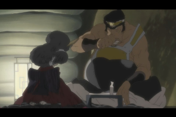 Из плюсов могу отметить персонажей - они действительно интересны и харизматичны, особенно в душу запал Кикутиё, мировой мужик с интересной историей. Красивая музыка, опенинг слышала давно в отрыве от видеоряда, очень понравился, красивый женский вокал. Сам саундтрек в аниме весьма атмосферный, и намного лучше рисовки справляется с погружением в мир этого аниме.