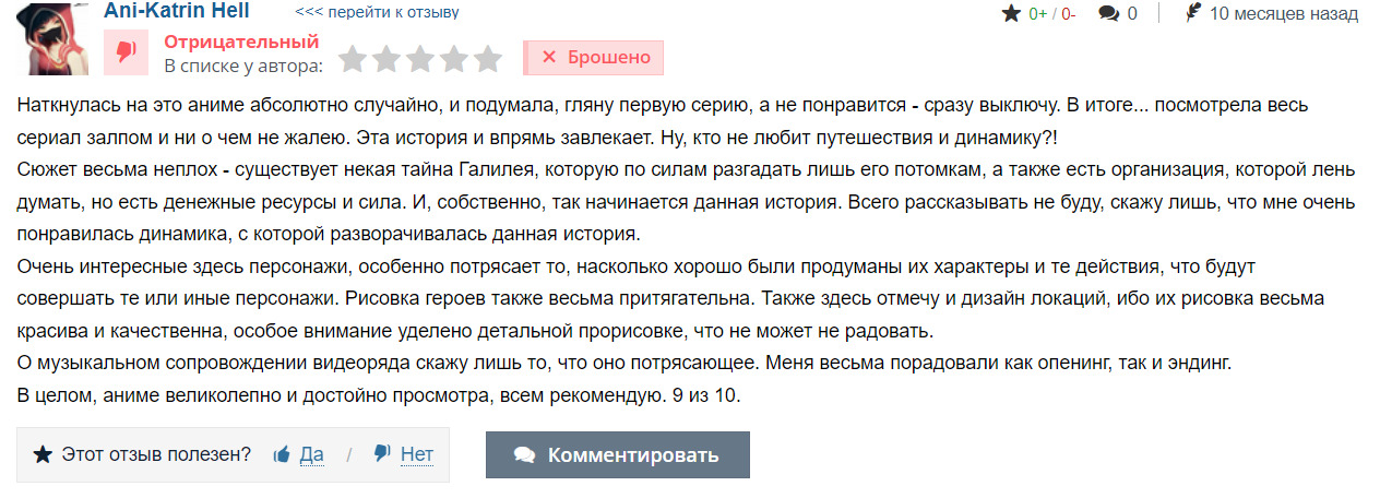 В целом, аниме великолепно и достойно просмотра, всем рекомендую. 9 из 10.