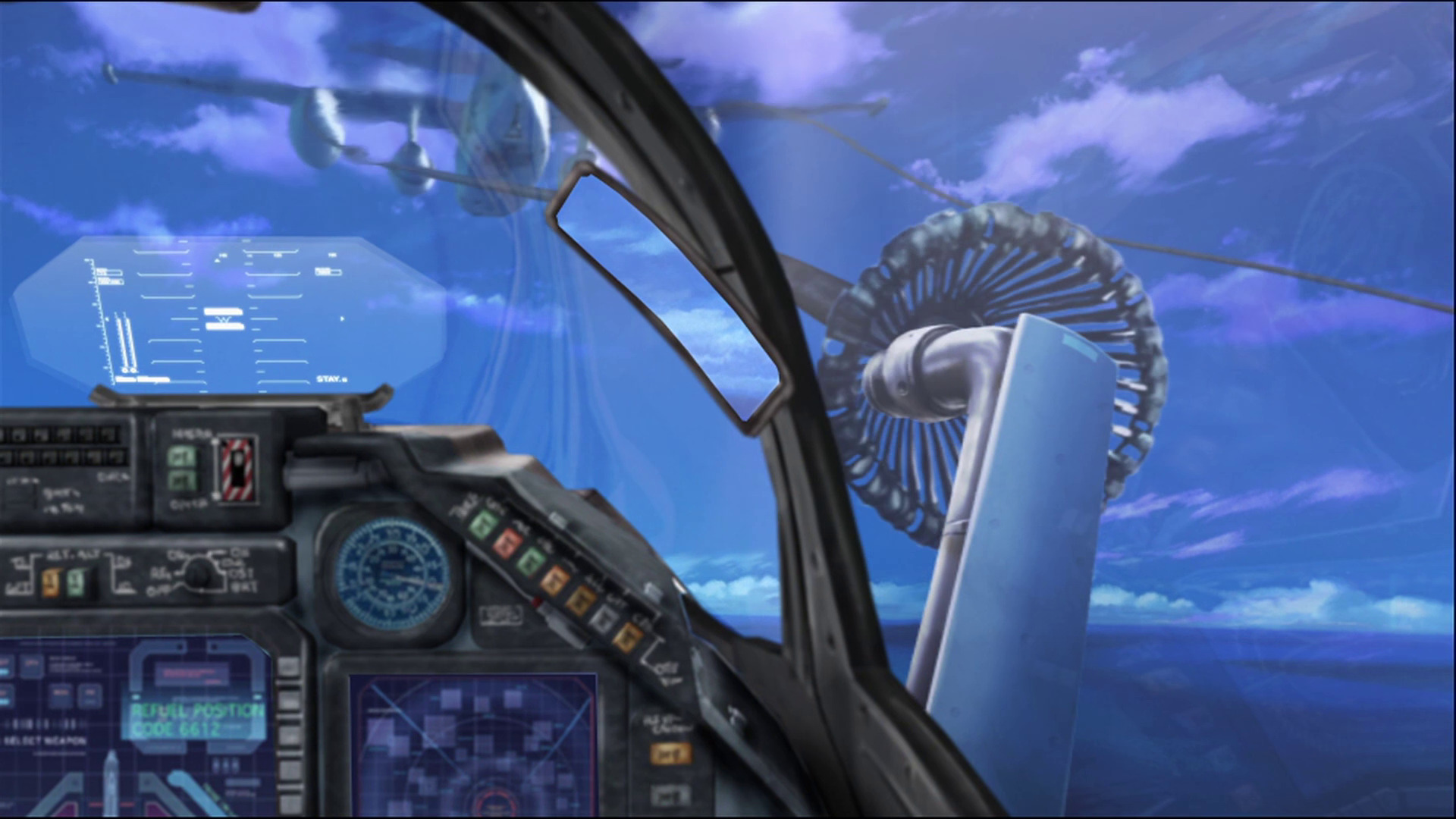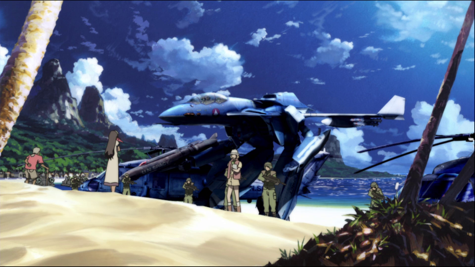С милитари-порно в Zero полный порядок. Вступительный "догфайт" классических самолетов выполнен достаточно реалистично для аниме. На месте джентельменский набор, состоящий из взлетов с авианосцев, дозаправки в воздухе, сброса топливных баков перед вступлением в бой, кобры Пугачева, применения активной брони у трансформеров. Кабины неплохо детализированы, а интерфейс "Валькирий" весьма правдоподобен.