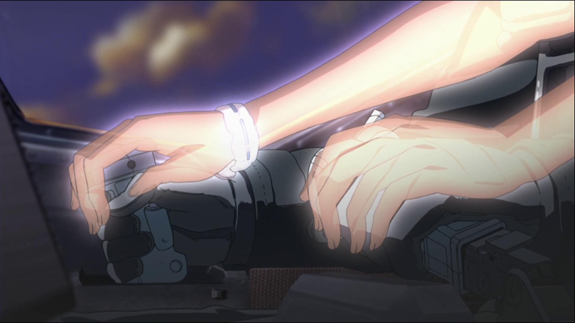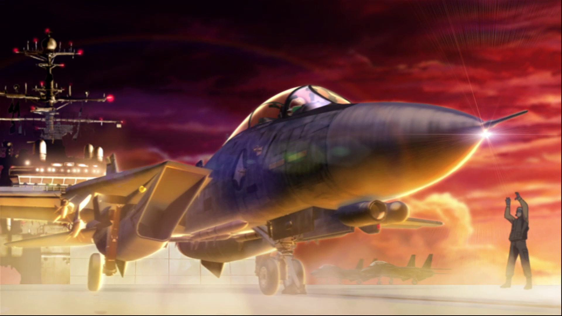 И с объемами милитари-порно создатели не поскупились. Боевых сцен в короткой OVA хватает сполна: начиная со сражения классических реактивных истребителей во вступлении сериал показывает достойный уровень в экшене и удерживает этот уровень до финальной битвы. Здесь тебе и дуэли между истребителями-трансформерами, и налет на авианосец, и чудовищная бомбардировка острова боеприпасами объёмного взрыва. Львиную долю времени экшен-сцены протекают в CG-формате, впрочем, компьютерная графика здесь выглядит опрятно и хорошо гармонирует с 2D-видеорядом. Модельки техники выполнены аккуратно, с сохранением пропорций и наличием мелких деталей. На месте и характерные для серии веерные пуски ракет (прозванные фанатами "цирк Итано", в честь аниматора Итиро Итано), инверсионные следы от которых расчерчивают небо в десятки спутанных линий. Кабинам самолетов тоже уделили отдельное внимание, в одной из сцен даже показывают работу нашлемной системы индикации, когда пилот рыщет зрачками глаз по защитному козырьку шлема и компьютерные системы отслеживают эти движения.