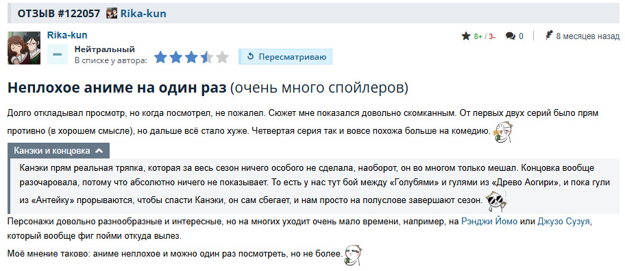 Спустя 8 месяцев с первого просмотра, уже после прочтения манги, я немного пересмотрел своё мнение касаемо аниме (и хотел просто написать более красивый отзыв). К тому же решил посмотреть его внимательнее, чем в первый раз.