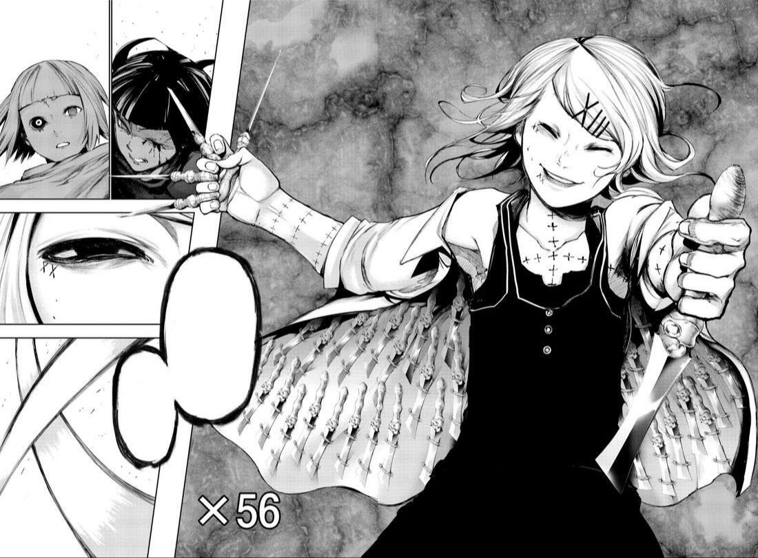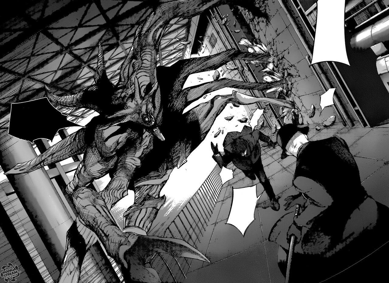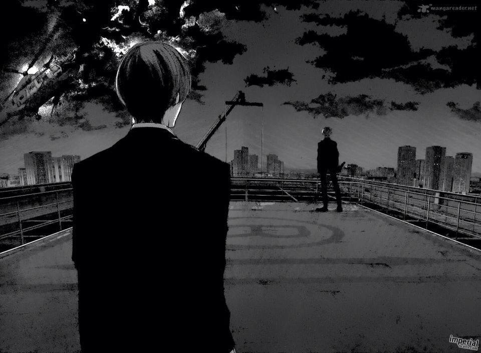 В своей работе Суи Исида показал сложное и невероятно трудное становление личности, описывая Канеки Кена. Читателя погружали в глубины сознания главного героя, где мы видели трансформацию и расщепление личности из доброго парня в сломанного и безжалостного гуля. Мангака прекрасно описывал этот путь, ловко и точно, используя множество средств и приемов, чтобы читатель после прочтения усомнился в собственной вменяемости. Рисовка в манге мягкая и я бы сказала трогательная, но все это происходит на фоне просто невероятного кровавого месива, что еще больше делает мангу такой невероятной и притягательной (ниже представлены скриншоты из первоисточника). В аниме же...я бы сказала что не дожали то, на что надеялись фанаты манги. Безусловно, если вы пойдете смотреть аниме и будете искать точного копирования сюжета, то удовольствия от просмотра вы получите намного меньше. Манга имеет за собой более сложное и глубокое повествование, где картинка самой истории сфокусирована именно на Канеки. Многие моменты в аниме переделаны и не имеют настолько драматичного посыла, какой закладывал в своей работе автор. Чего уж стоит финальная "трансформация" Канеки в конце сезона. Если сравнивать этот момент с аналогичным в манге, то это безусловно небо и земля и по стилю рисовки, и по уровню напряжения. Именно момент сильного отличия от оригинала и не понравилось в свое время тем, кто познакомился с сюжетом именно благодаря первоисточнику. В последующее же время появились те, кто любит именно само аниме, как самостоятельное произведение, что в какой-то момент выдвинуло его на новую нишу цитирования и подражания. Хотелось бы отметить, что манга вызвала у меня просто невероятные эмоции и я по праву могу назвать ее одной из лучших, что выходили в то время. В данном обзоре я рассмотрю именно 1-ый сезон аниме, как отдельного произведения, потому что лично для меня так намного проще оценить именно работу сценаристов и аниматоров, которые работали над тайтлом.