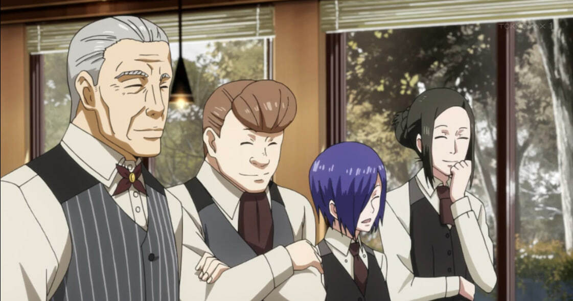 Реализация мира в первом сезоне меня порадовала при просмотре. В аниме 12 серий, за которые мы увидим становление всей истории. Здесь нам авторы расскажут и про группировки гулей, кто с кем враждует и по какой причине, делении Токио на особые районы, которые отличаются наличием или отсутствием гулей более сильного ранга, устройстве организации CCG и прочие важные для вселенной вещи. Отдельного внимания заслуживает ветка с историей девочки Хинами, очень уж она меня тронула. Все это делает первый сезон хорошим полем для становления более сильного и уверенного в себе произведения.