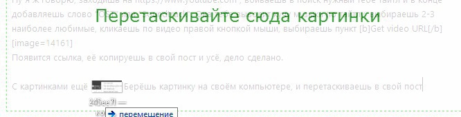 С картинками ещё проще. Берёшь картинку на своём компьютере, и перетаскиваешь в свой пост