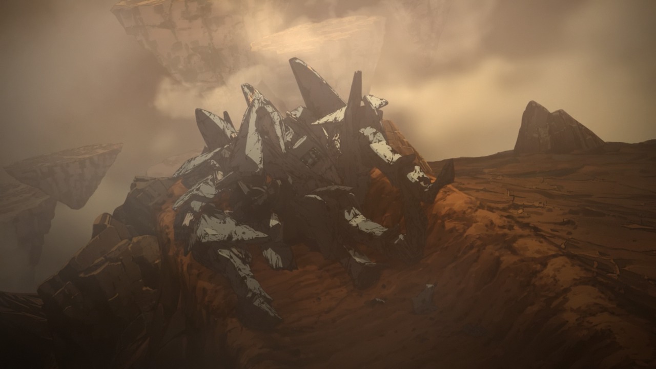 Polygon Pictures полностью оправдывает свое название Polygon 3Д говна, лица у все персонажей прям на спрашивается какого черта я в это аниме попал на столько все убого. Но все этот артхаус интересен своим сюжетом, и миром, корабль интересен, жаль тока не показывают самих пришельцев, для чего, за чем, и почему они воюют, какой их мотив, такое ощущение они убивают людей просто так как мы убиваем тараканов, просто так.
