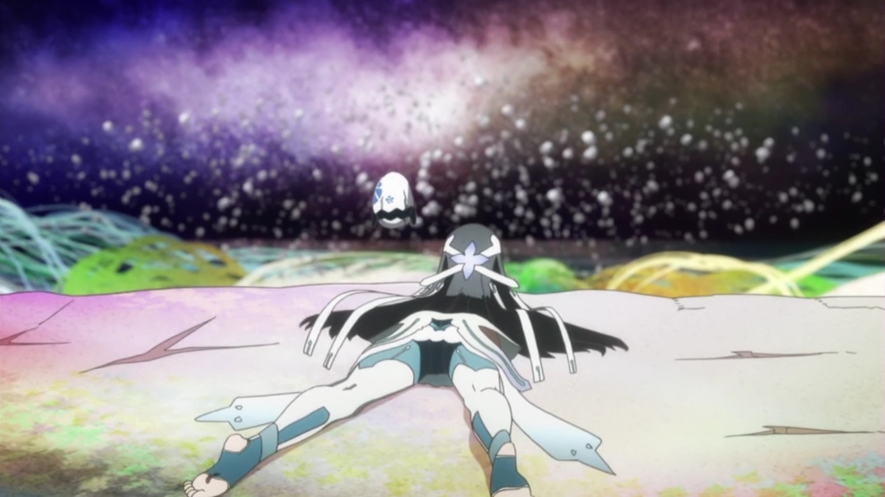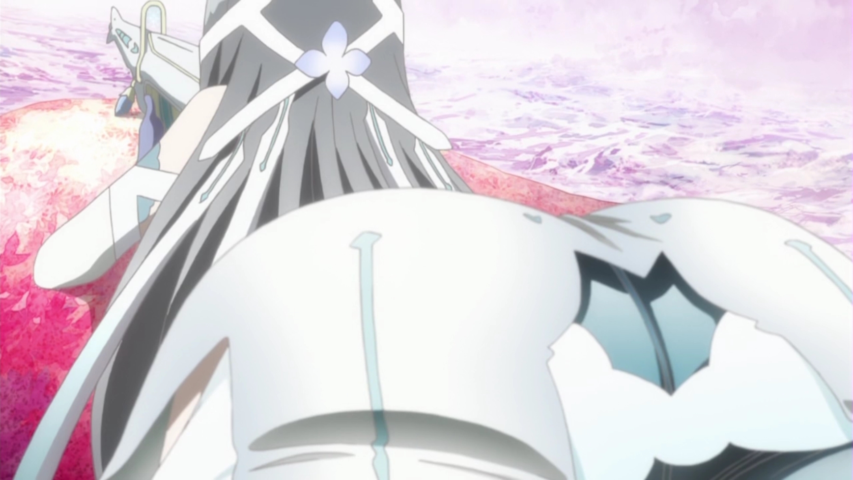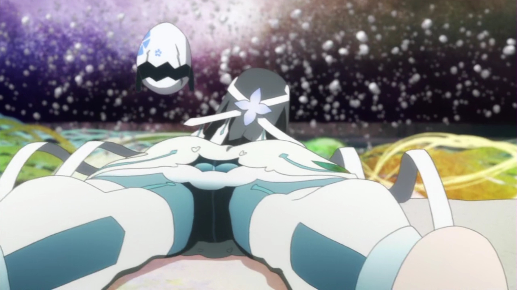 - Сюжет. Он мега банален. Я реально до последней серии ждал внезапного поворота, как с Мами в Мадоке. В итоге еще больше разочаровался. Наш мир - барьер. В подреальности существует некий центр, к которому стремятся орды сюрреалистичных врагов. Врагов бездушных, бесхитростных и абсолютно 3D-шных, ибо много их, а тайтлу нужна динамика и вообще вас ждет глупый, бессмысленный тир с участием группы волшебниц против тысяч вражеских болванчиков. Если последние доберутся до условного центра - миру конец. Для защиты оного некая высшая сущность избирает наших девочек, приставляя к ним фамильяров - телохранителей и скрытых манипуляторов, что твой Кьюбэй из Мадоки, только у каждой свой и подчиняется упомянутой сущности. Тянки отвечают за определенный район города - привет Мадоке - а дальше будет унылая бойня между слабым 2D и убогим 3D. Из раза в раз. Обилие дешевых спецэффектов, школьный пафос мотивационных речей, превозмогание, а какая тут драма! О, эта драма! ЮкиЮна позиционируется, как драматическое "произведение", дарк-махо, дум-седзе. Вроде никто не умирает, а героини постоянно в соплях, ревут, подавлены и периодически ссорятся. Их, видите ли, обманули. Никто не предупредил, что за супер силу нужно платить здоровьем - ребята, ну, это очередная "отсылка" к Мадоке! Очередное кручу-верчу за свое выдать хочу. Моменты нагнетания драмы, когда, к примеру, одна из волшебниц находит аудиодневник и случайно узнает о мечтах подруги - это настолько избитые клише, что мне реально было стыдно смотреть. Из вас буквально пытаются сосать слезы обильно забрызгивая глаза луковым соком. У Мадоки имелся свой, уникальный подход. Авторы ЮкиЮны пошли по индустриальному шаблону. Сперва нужно зацепить аудиторию. Чем? Правильно, фансервисом! В первой же серии навалить побольше сверкающих попок на время перевоплощений. Больших сисек и побольше, ведь у нас уже ученицы средней школы, ничего себе! Соответствующие платья для большей сексуализации образа. Подобная дичь всплывет в гайдэнах спустя миллион лет, хотя я не считаю их каноничным продолжением Мадоки.