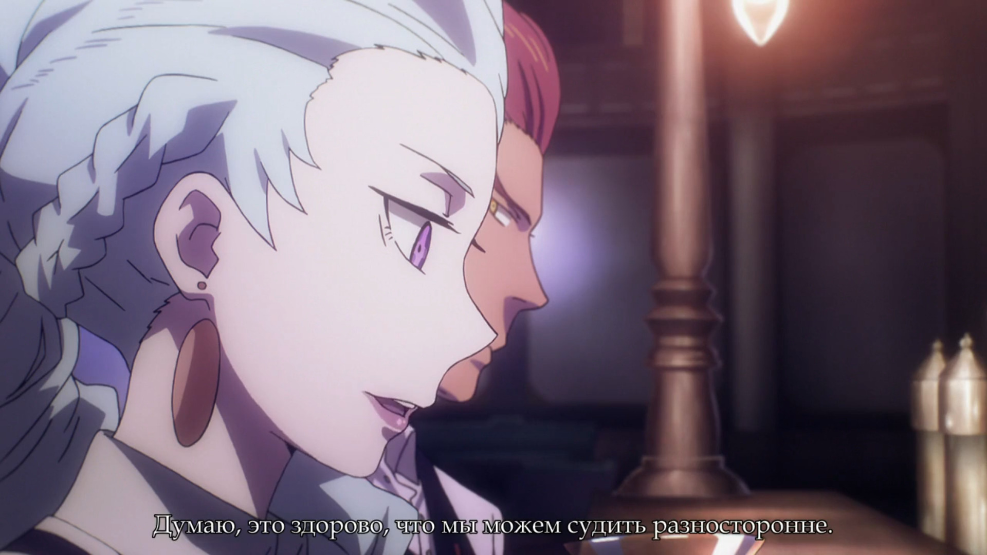 Касательно второй функции, упомянутой выше, она четче всего прослеживается в конфликте Ноны и вот этого парня. Последний придерживается строгих правил о том, что судьи не более чем марионетки, они не живы, они лишены чувств и так далее. Которые, надо сказать, излишне часто повторяются в сериале, и это немного раздражает. Нона же на примере Декима, благодаря Чиюки ставшего более человечным, стремится доказать обратное. Конфликт простой, функциональный, и представляет из себя исключительно противостояние идей. Впрочем, со своей задачей обосновать решение Ноны свести Декима и Чиюки, а также прямо указать на ряд вопросов, поставленных в сериале, он вполне справляется. Имеет ли судья право испытывать эмпатию к тем, кого судит? Нужны ли судье эмоции? Может ли судья, изначально лишенный эмоций, научиться им?