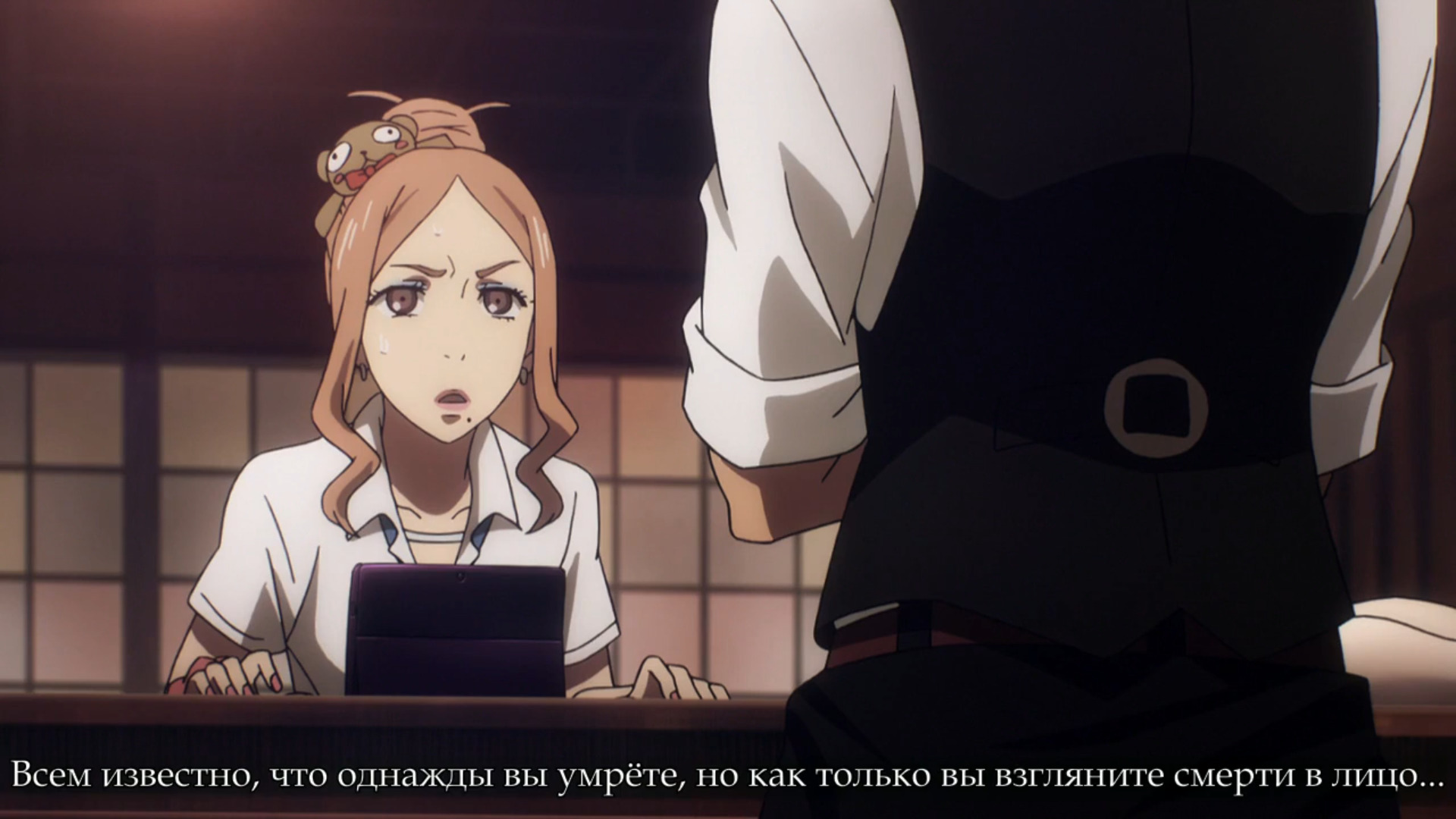 На протяжении всего сериала истории про суд разбавляются сценами "повседневной" жизни различных работников данной организации, в частности, Ноны. По большей части, у них две функции: во-первых, немного больше познакомить зрителя с принципами, по которым работает местное чистилище, а во-вторых, дать иную точку зрения. И если говорить про первую функцию, то тут все достаточно печально. "Мир" в сериале проработан довольно поверхностно. Каких-то четких фактов о том, как появилась вся "контора", почему для суда используются именно игры, по каким принципам работают вещи вроде передачи воспоминаний игроков судье, не имеется. Максимум, иногда в диалогах или визуальном ряде проскальзывает информация вроде "воспоминания хранятся в материальной форме", что говорит мало о чем.
