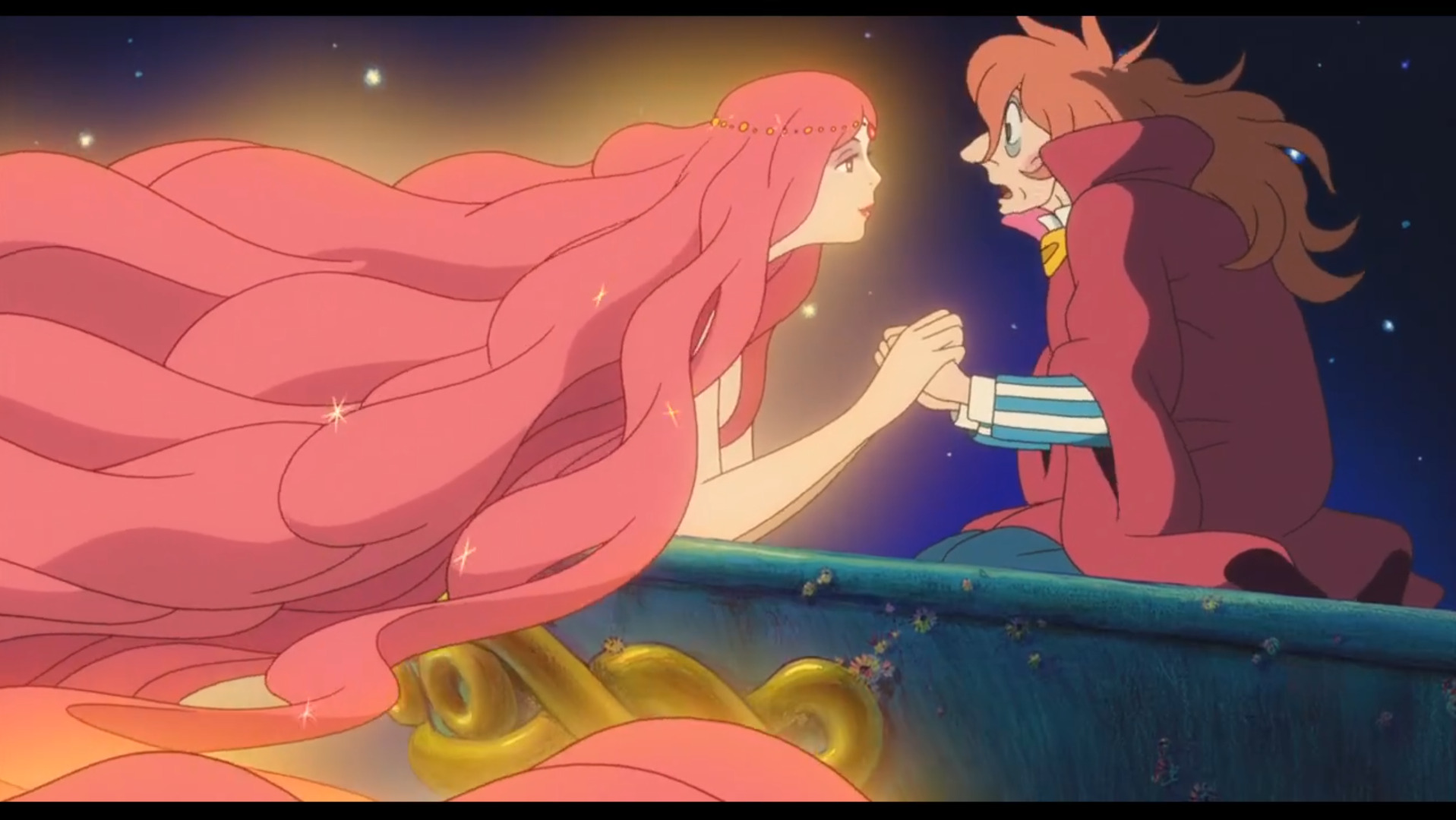 Для меня это история Поньо и это аниме намного роднее диснеевской русалочки и приятнее, очень рада, что Поньо не превратилась в пену, а то обычно "Русалочка" у меня ассоциируется с тем, что русалка превратилась в пену, а ее сестры пожертвовали своими волосами, чтобы у русалочки появился нож, которым она могла бы убить принца и вернуться в морское царство, но она выбрала сама умереть и дать принцу счастливую жизнь, а для принца русалочка была лишь диковиной, как питомец да и выбрал он другую, а в Поньо Соске не выбирает другую девочку и принимает Поньо такой какая она есть.