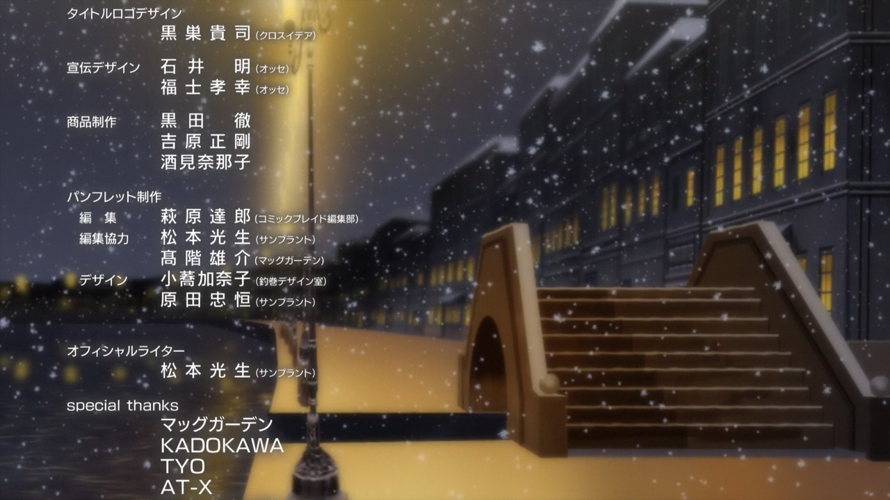 Когда начинал смотреть, боялся, что без первоисточника (а все, закончился он, осталась лишь пара глав, которые потом там и сям доэкранизируют) будет уже не то. Но, к счастью, планку качетства не уронили. Это все та же Аква, которую я так полюбил. Конечно, новая троица (Ай, Аня и Адзуса) не такие яркие, как привычные шестеро героинь, но их роль здесь -- показать, что пришло новое поколение ундин. История Арии продолжается, нам просто показали лишь ее краешек.