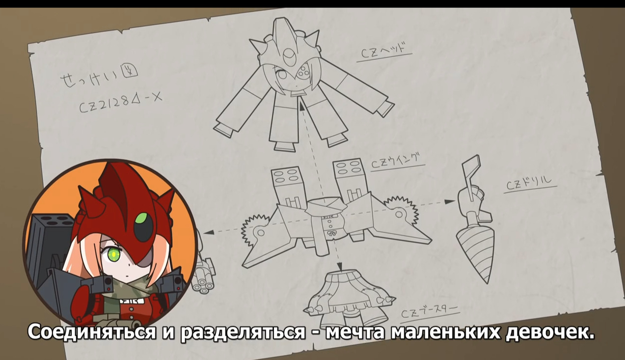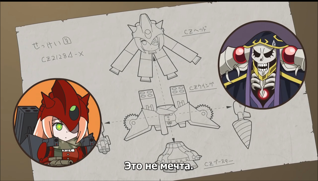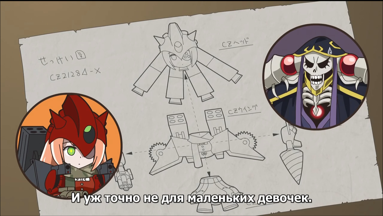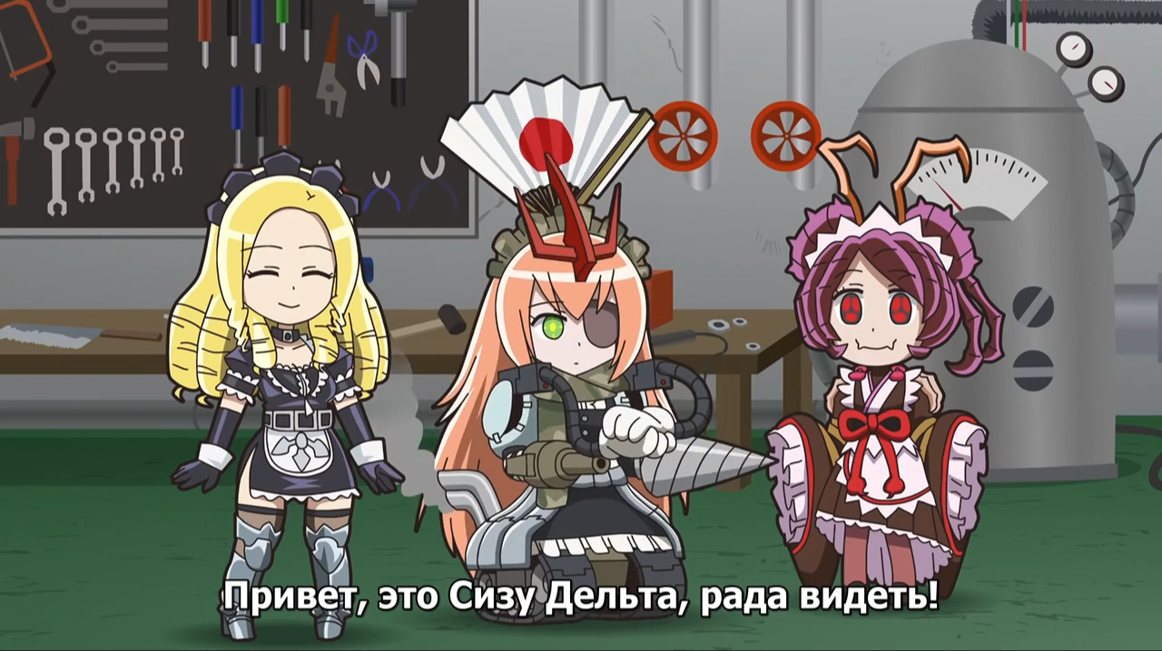 @Genokiller07, Нажми открыть ВКонтактеВ общем в аниме Ple Ple Pleiades (Спешлах аниме) ( Если быть совсем точным это (Overlord) 7 серия (2015) Спэшлы) Плеяды решили "улучшить" Шизу и создали из нее "танк" с дрелью и пушками. Так вот, при нажатии кнопочки у нее вырастали телескопические руки и начинали терется друг об друга, а над головой появлялся веер с флагом Японии. Также менялась манера разговора от безэмоционального к более как сказать...ораторскому что ли. В нашем переводе было "Привет, это Шизу Дельта, рада вас видеть!" В оригинале она говорит типа "Хайто мас Шизу Дерута дес" и так далее что то, при этом разговаривает немного дергано и дергается на месте будто постоянно оборачивается.