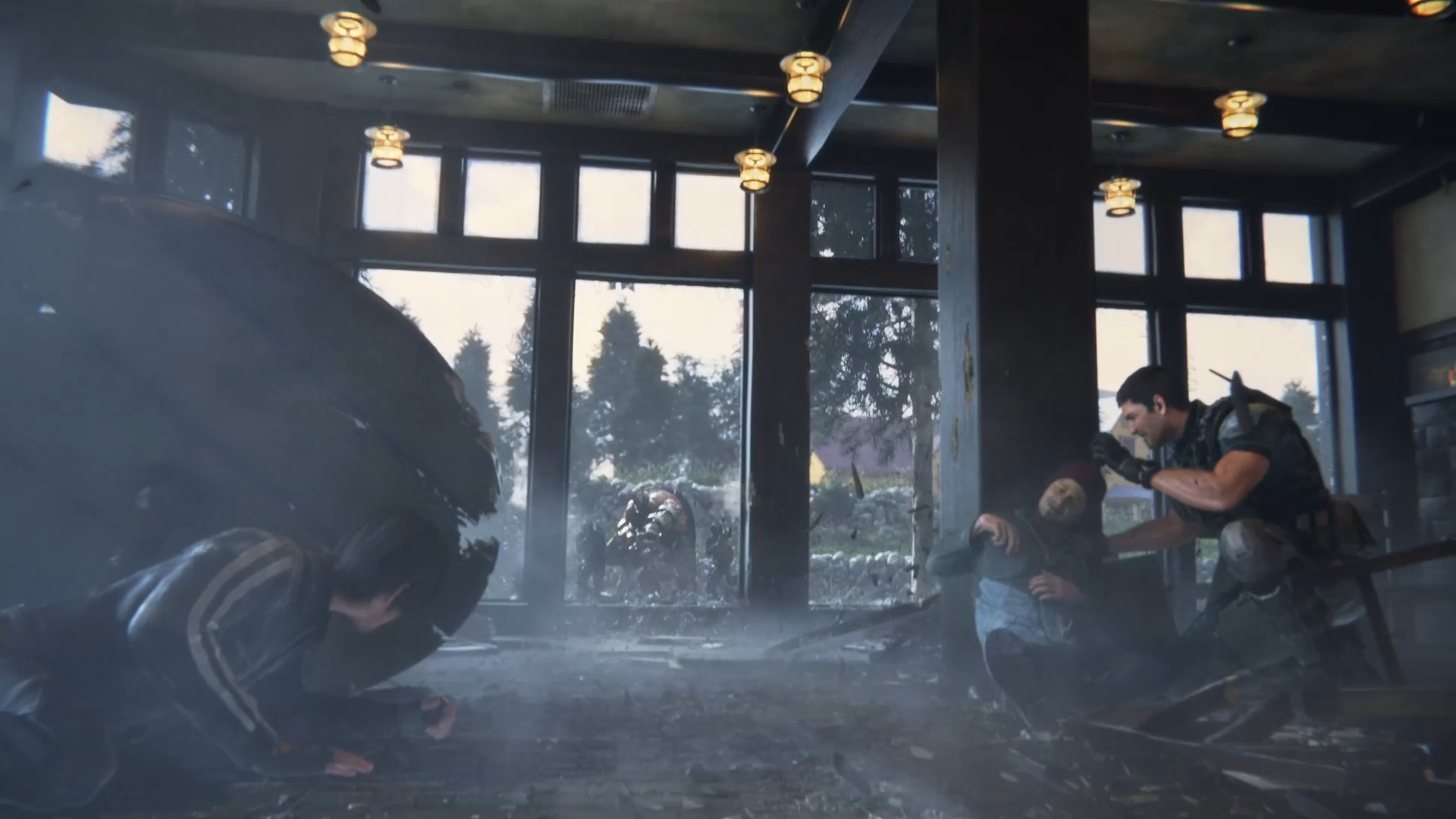герои прячутся от выстрелов шестиствольного пулемёта, причем размером как с тунгуски, за деревянными столиками