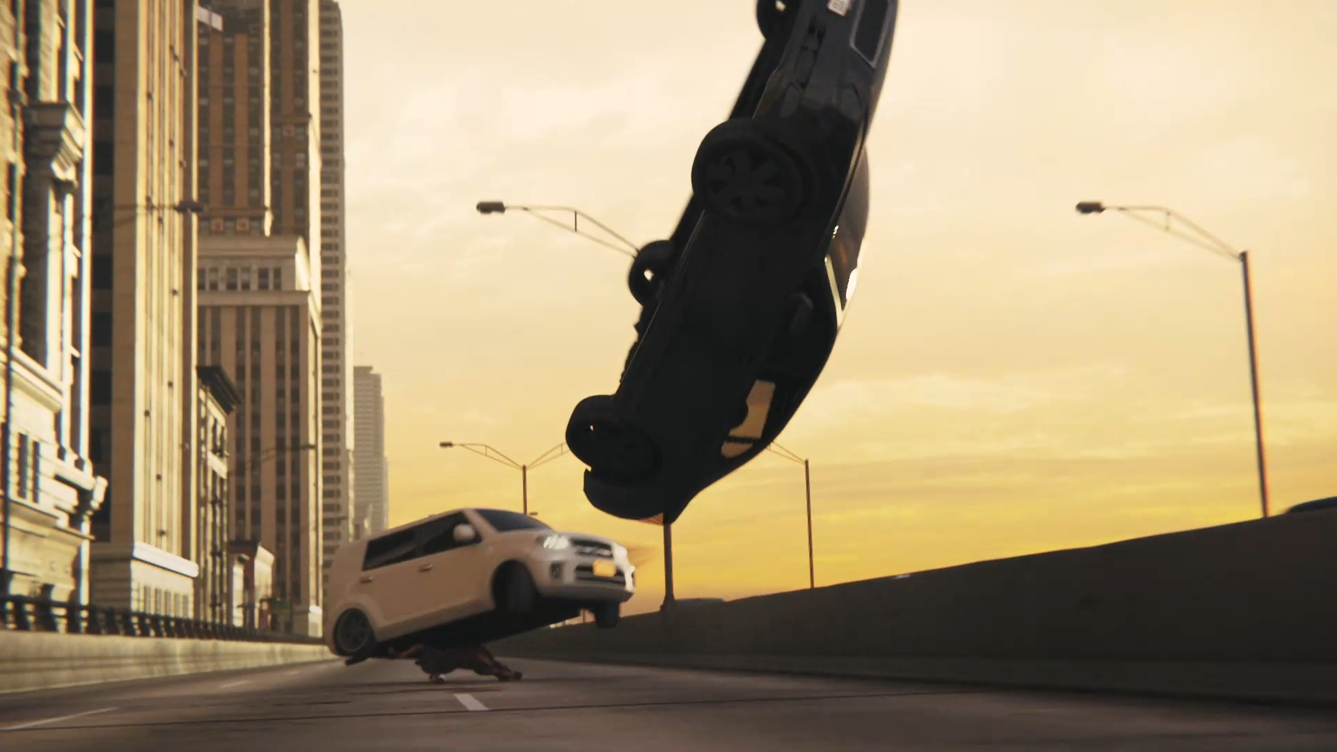автомобили взлетают в космос от столкновений с доберманом