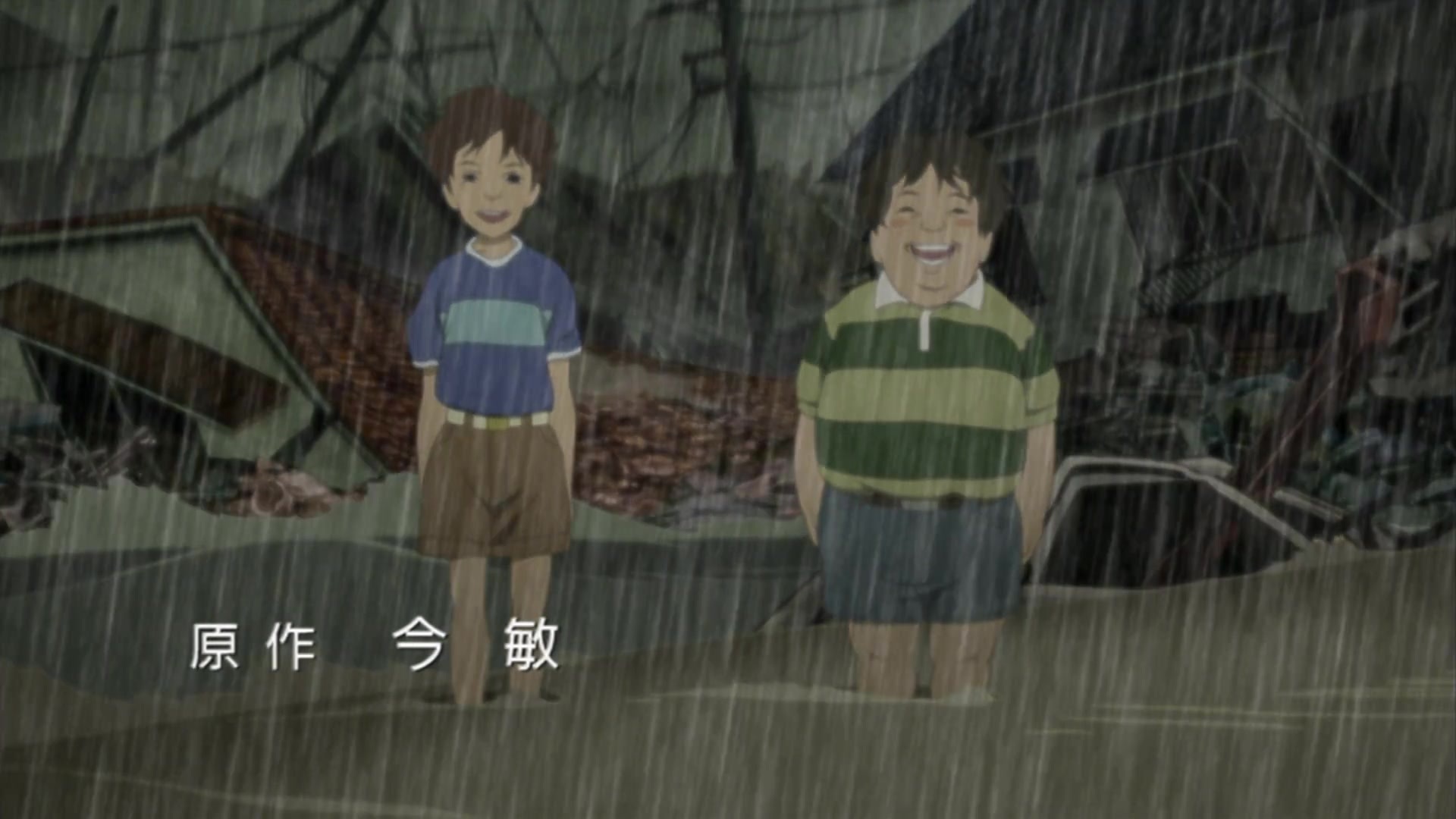 Опенинг встречает зрителя красивой песней в исполнении Susumu Hirasawa — талантливого музыканта, композитора и вокалиста. Он всем существом кричит, что показанное вовсе не то чем кажется, демонстрируя смеющихся персонажей в жутких декорациях, заканчивая их ядерным грибом.