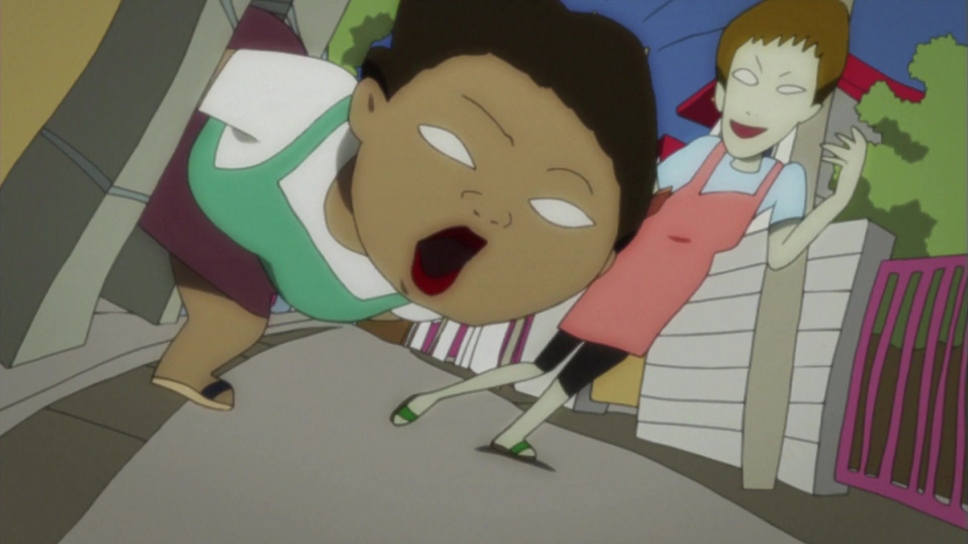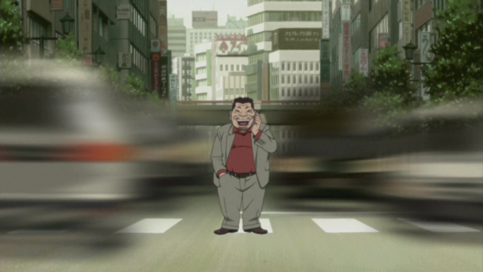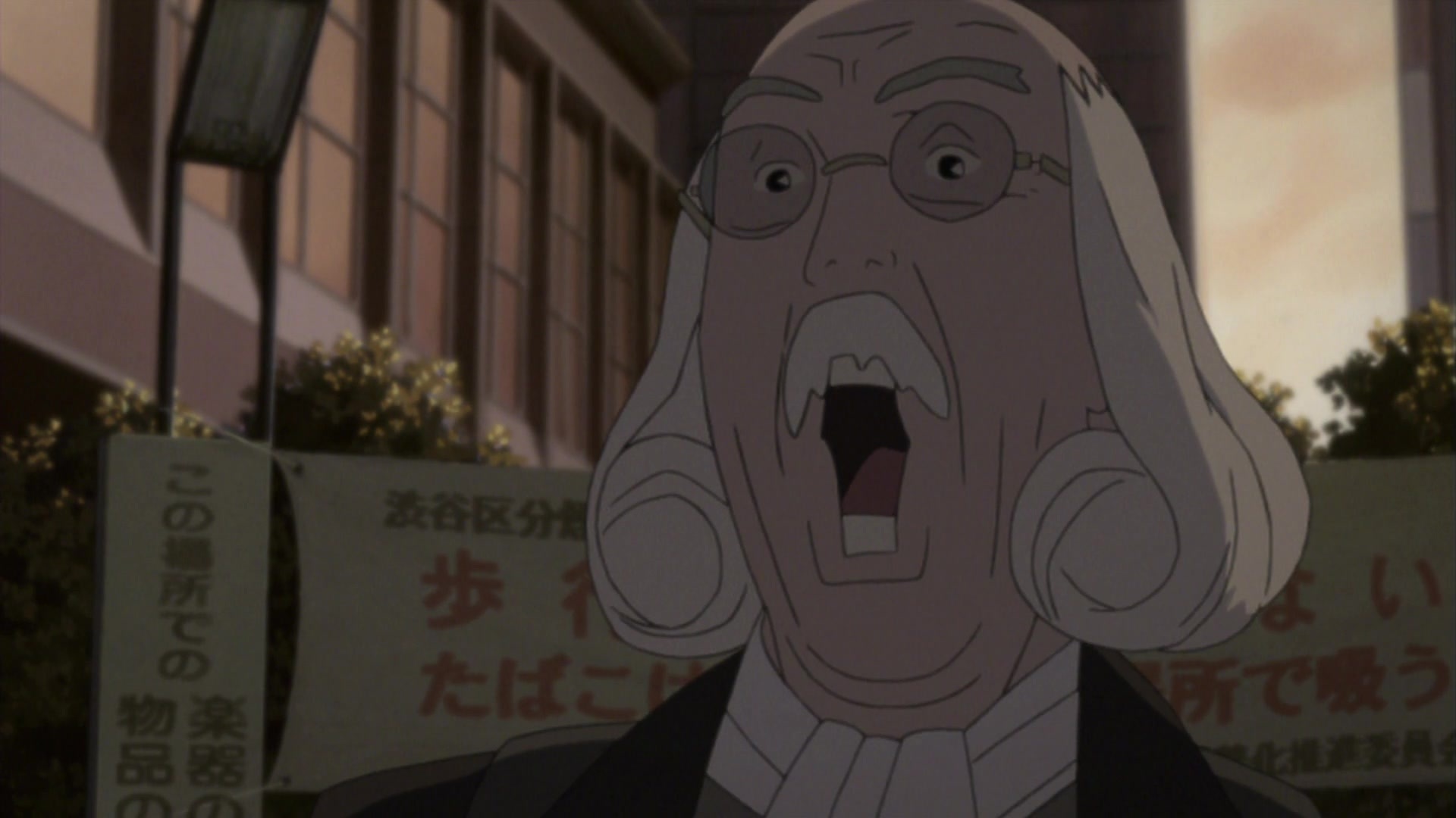 Местный юродивый, добродушный маразматик, обычно появляющийся в больнице. Выполняет в основном сюжете роль оракула, подсказками помогающего героям противодействовать парню с битой, как бы подразумевая, что необходимо стать сумасшедшим для понимания всех деталей картины. В сценах после эндинга выполняет роль конферансье, в иносказательной форме пересказывающего следующий эпизод. Его местоположение на Луне в опенинге и превью — отсылка на кульминацию фильма Кона Sennen JoyuuАктриса тысячелетия, символизирующая его недосягаемость и просвещённость. Образ был вдохновлён персонажами Katsuhiro Otomo в Старик Зет и Дому — Детские сны.