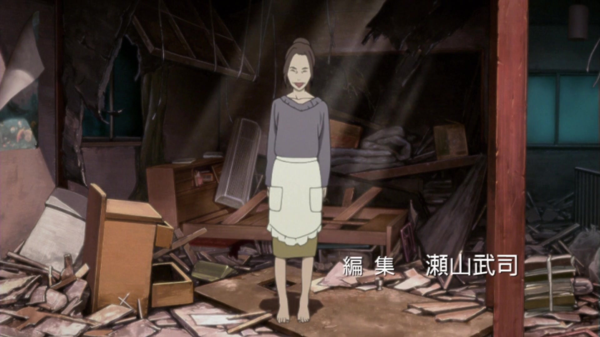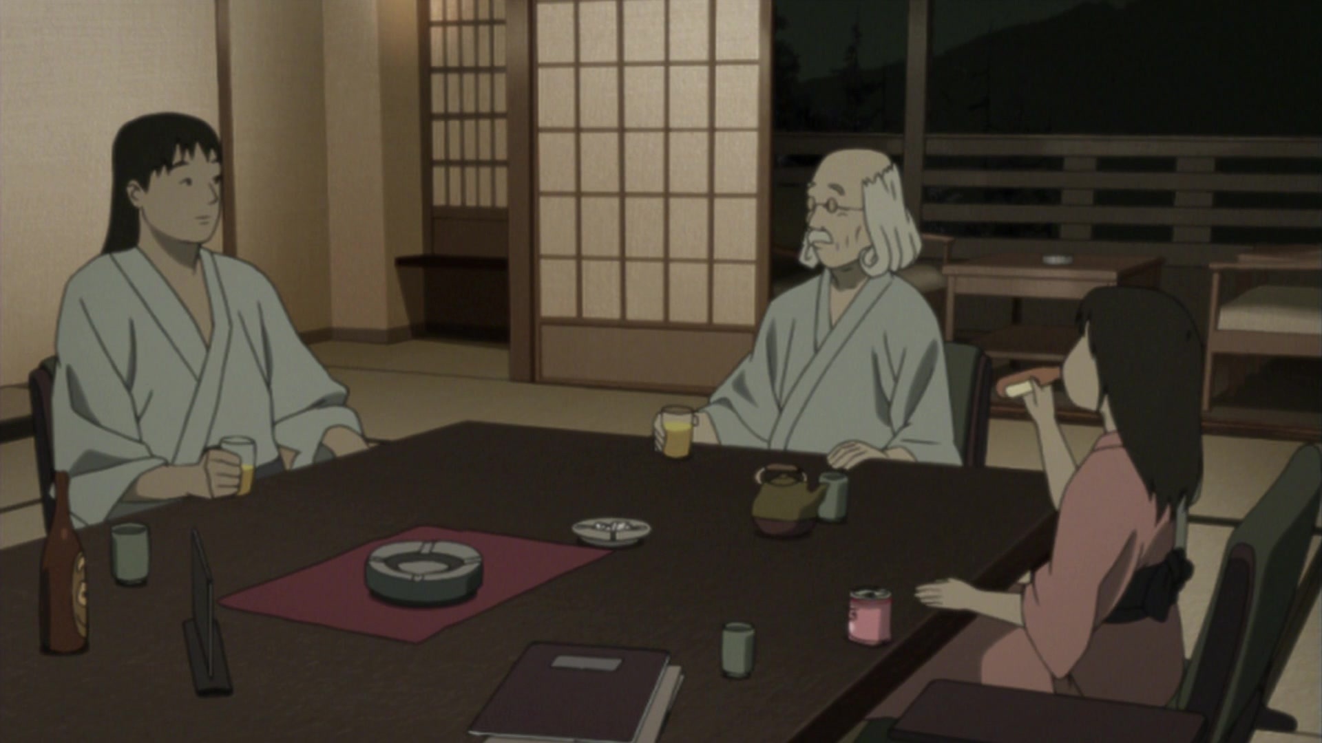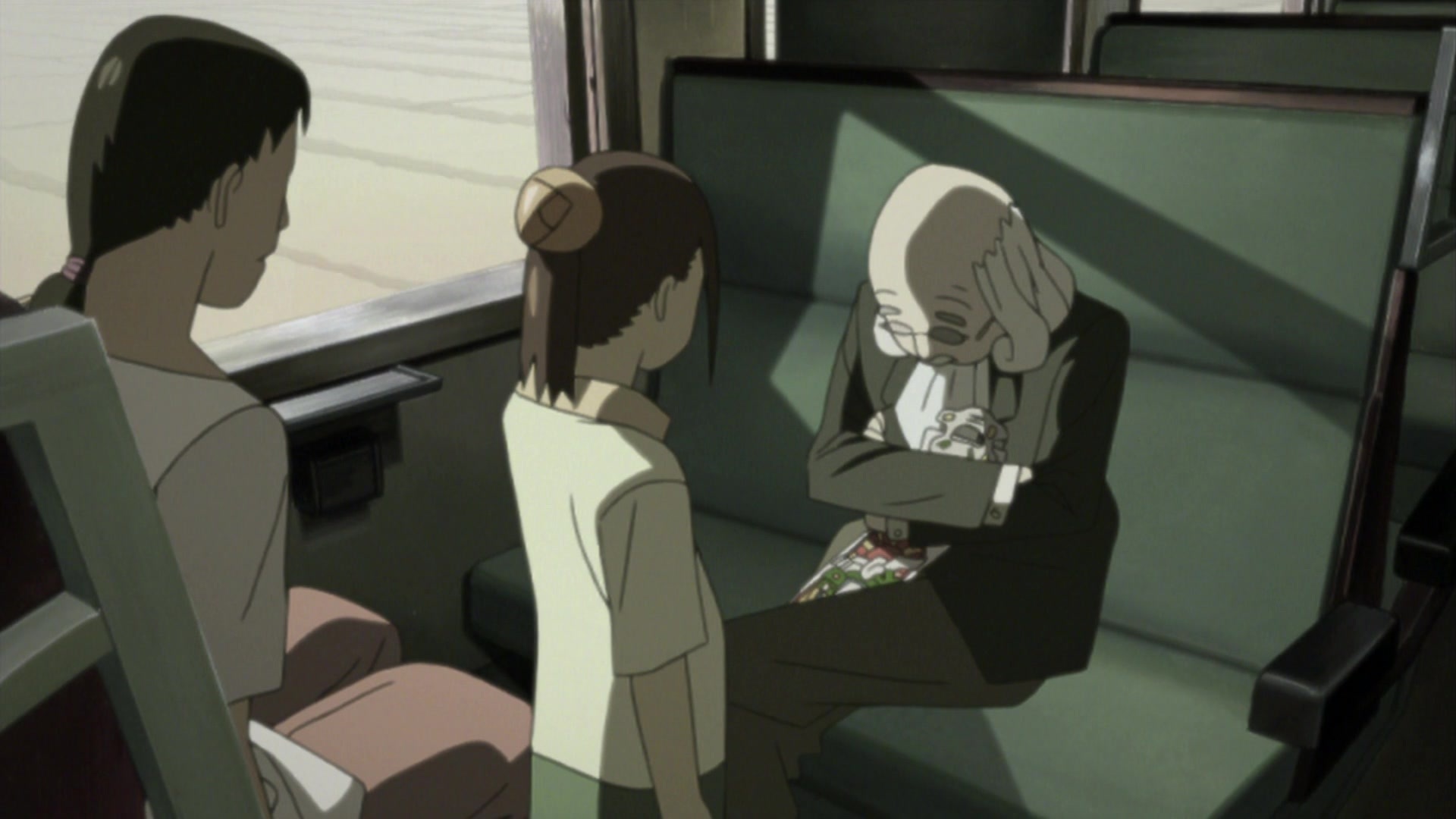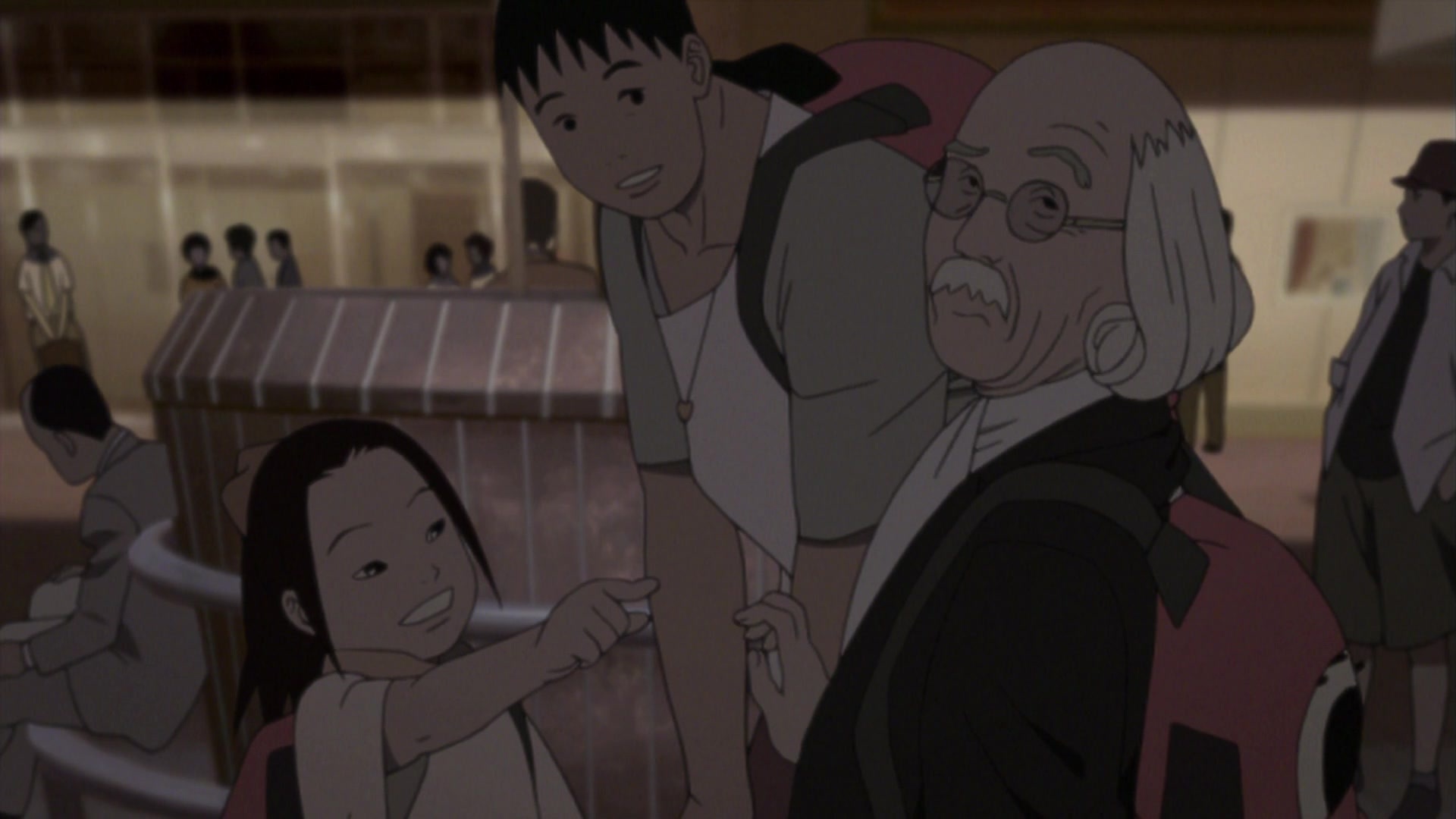 Местный юродивый, добродушный маразматик, обычно появляющийся в больнице. Выполняет в основном сюжете роль оракула, подсказками помогающего героям противодействовать парню с битой, как бы подразумевая, что необходимо стать сумасшедшим для понимания всех деталей картины. В сценах после эндинга выполняет роль конферансье, в иносказательной форме пересказывающего следующий эпизод. Его местоположение на Луне в опенинге и превью — отсылка на кульминацию фильма Кона Sennen JoyuuАктриса тысячелетия, символизирующая его недосягаемость и просвещённость. Образ был вдохновлён персонажами Katsuhiro Otomo в Старик Зет и Дому — Детские сны.