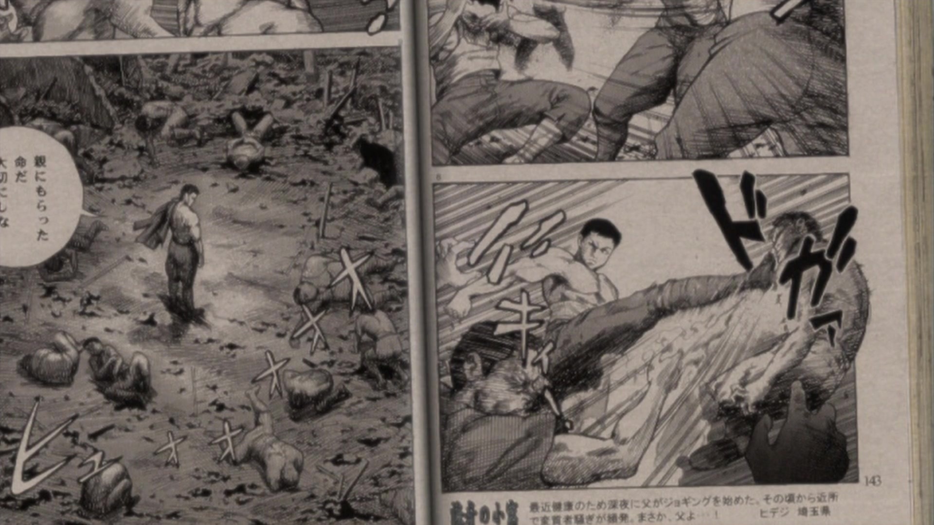 В четвёртом эпизоде появляются панели из манги про уличного бойца, который в одиночку побеждает головорезов. Вымышленная романтическая история из девятого намеренно сделана в стиле сёдзе 80-ых. А в двенадцатом и тринадцатом демонстрируется плоский мир детектива Икари, где все люди и дома выглядят как картонки, разрисованные в стиле сеттинга Японии эпохи Сёва.