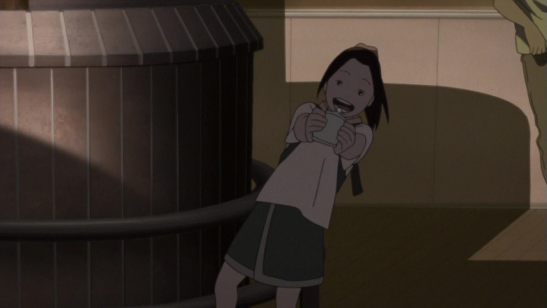 Восьмой эпизод — комедия положений. Поэтому герои в нём нарисованы в жёлтой цветовой гамме и с минимумом деталей в дизайне. Складывается ощущение, что история происходит в сумерках, хотя проходят дни и ночи. С анимацией в этой серии постарались на славу — выражения лиц и язык тела девочки и старика запоминаются надолго.