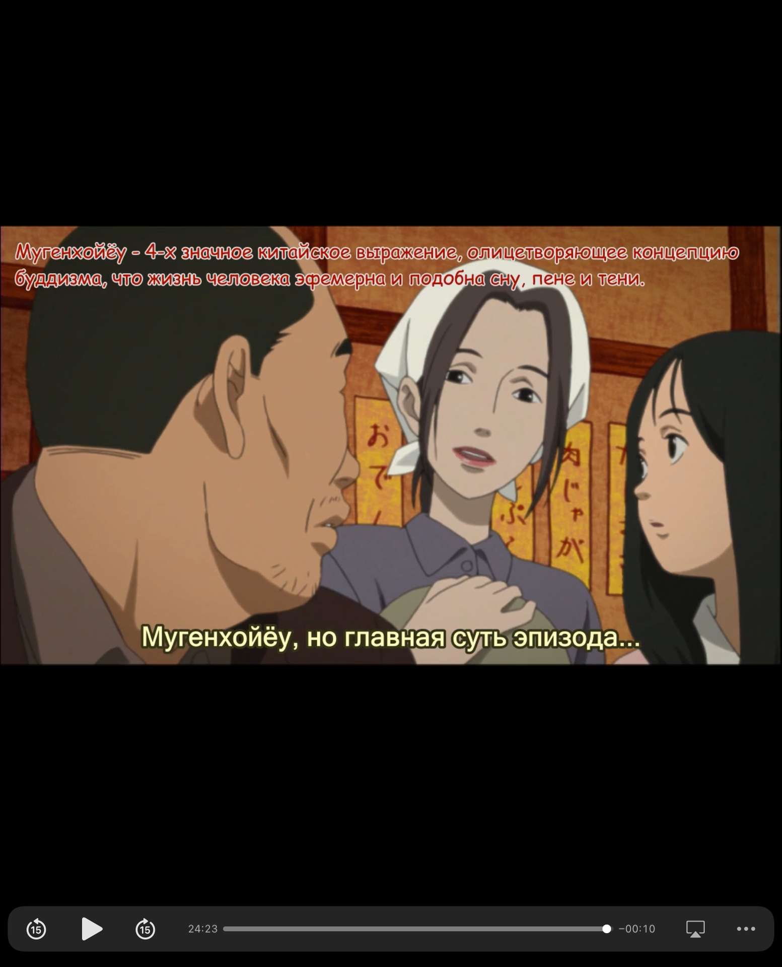 @Mokkoriman,@Clear Foe,@Mokkoriman@Пазу@Mokkoriman, может быть, ошибка переводчика?@Mokkoriman@Пазу, да, вот, даже отскринил в плеере с таймингом@Пазу,@Clear Foe@Mokkoriman, я имею ввиду, что переводчик мог ошибиться. Меня вот смутило слитное написание, хотя слово знакомое. Тут нужен специалист по китайскому.@Mokkoriman@Mokkoriman, я думаю, должно быть "мугэнхоё" (夢幻泡影), только это слово не китайское, а японское прочтение.夢幻泡影 /むげんほうよう/mugenhouyou