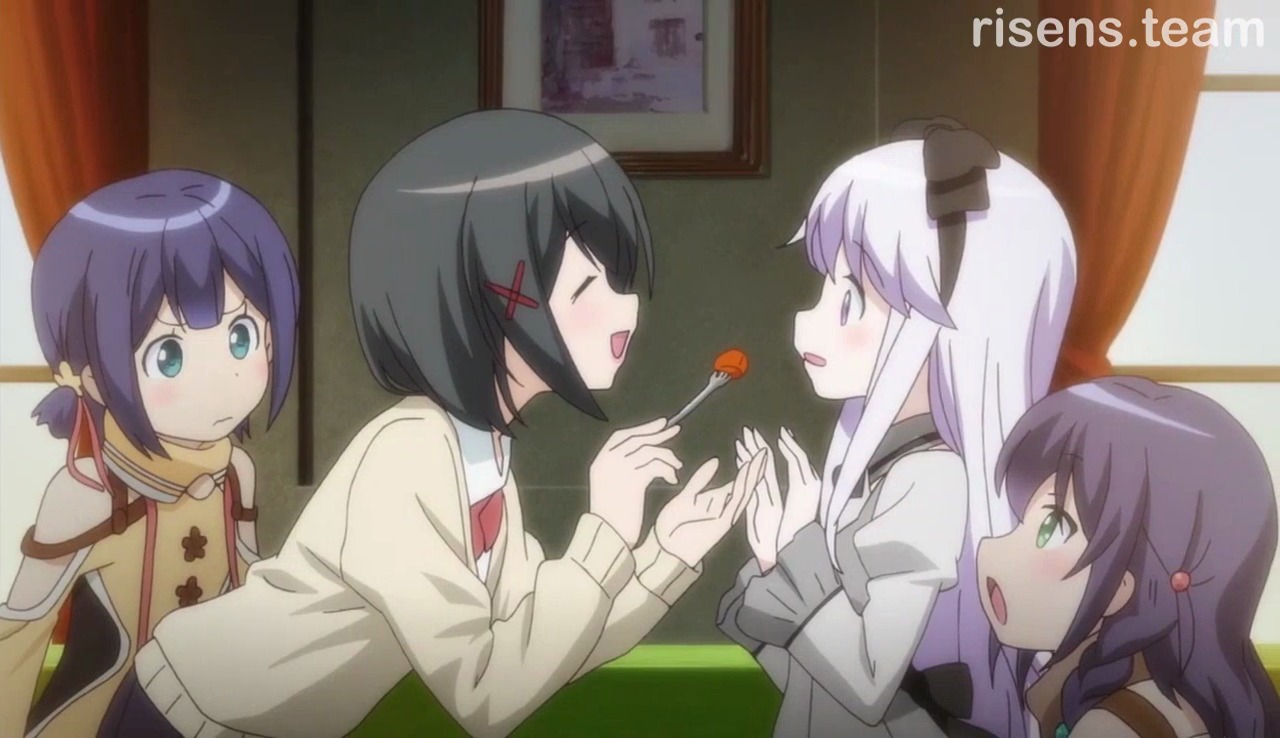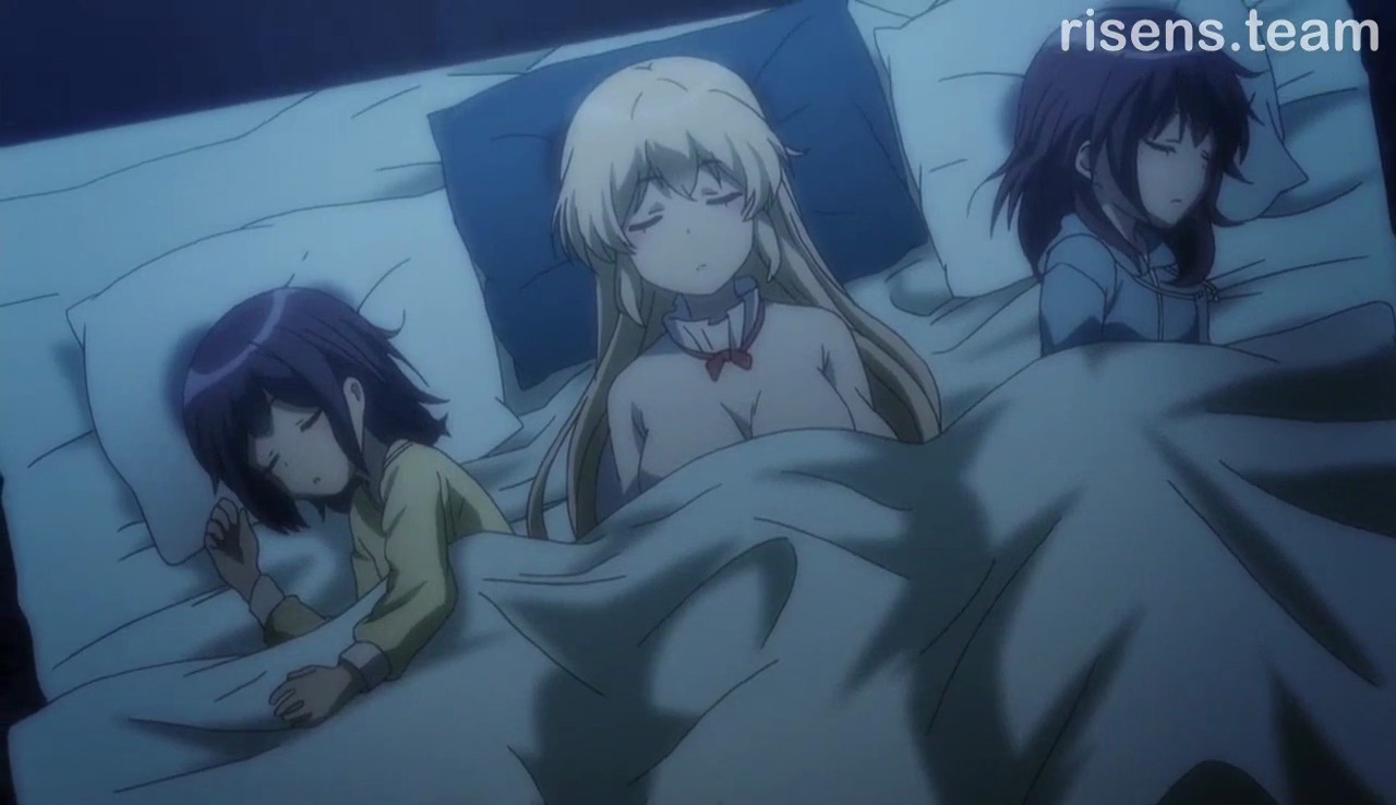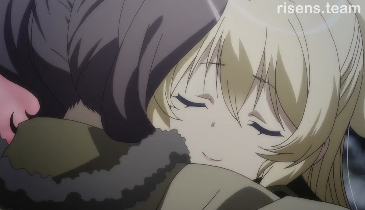 Но не всё так плохо, в тайтле присутствует и светлая часть, а именно - слайсовая. Вот тут-то как раз всё отлично: приятные героини, вкусные лольки, много различного рода милоты и ещё больше юрийности. Было также пару фансервисных серий с источниками и бассейном. Мне приносило огромное удовольствие наблюдать за взаимоотношениями всех этих юрийных сестричек, больше всего понравились Кей и Ингрид, довольно-таки необычно было видеть такие теплые и нежные отношения между лоли и милфой. Также очень сильно доставляли своей беззаботностью и обнимашками Тия и Сара.