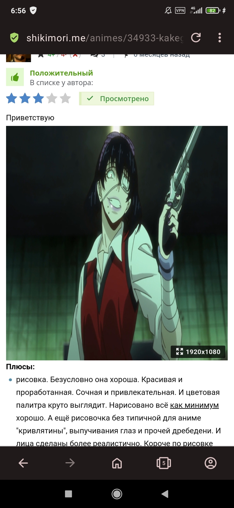 - рисовка. Безусловно она хороша. Красивая и проработанная. Сочная и привлекательная. И цветовая палитра круто выглядит. Нарисовано всё как минимум хорошо. А ещё рисовочка без типичной для аниме "кривлятины", выпучивания глаз и прочей дребедени. И лица сделаны более реалистично. Короче по рисовке "Безумный азарт" лучше чем 90-95% аниме.