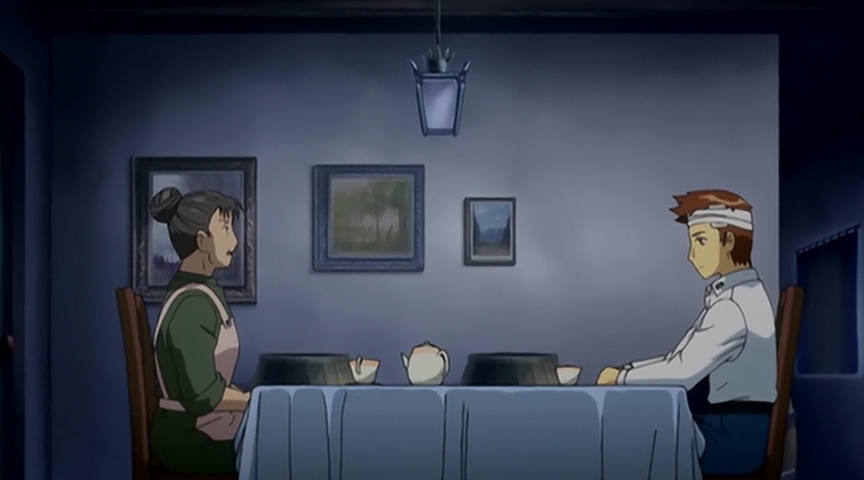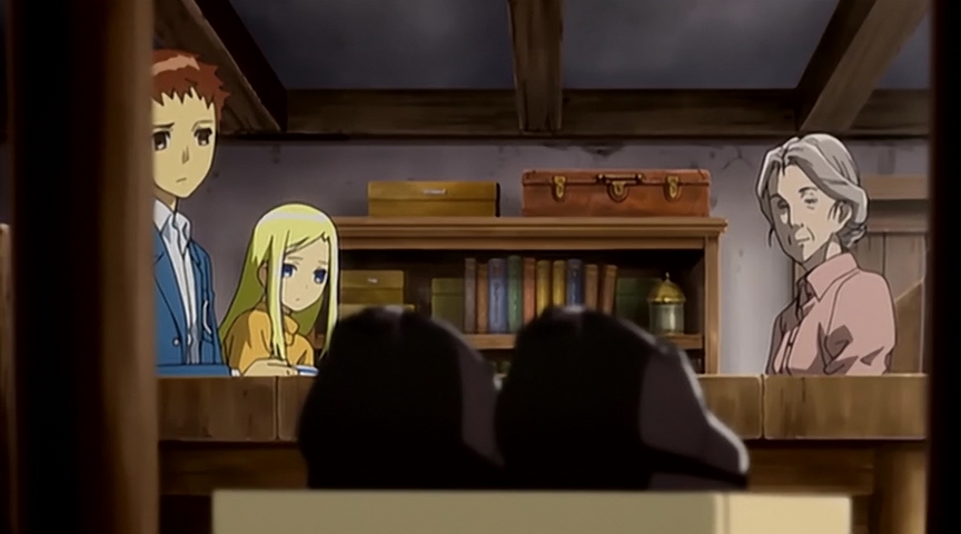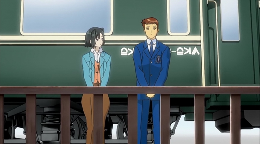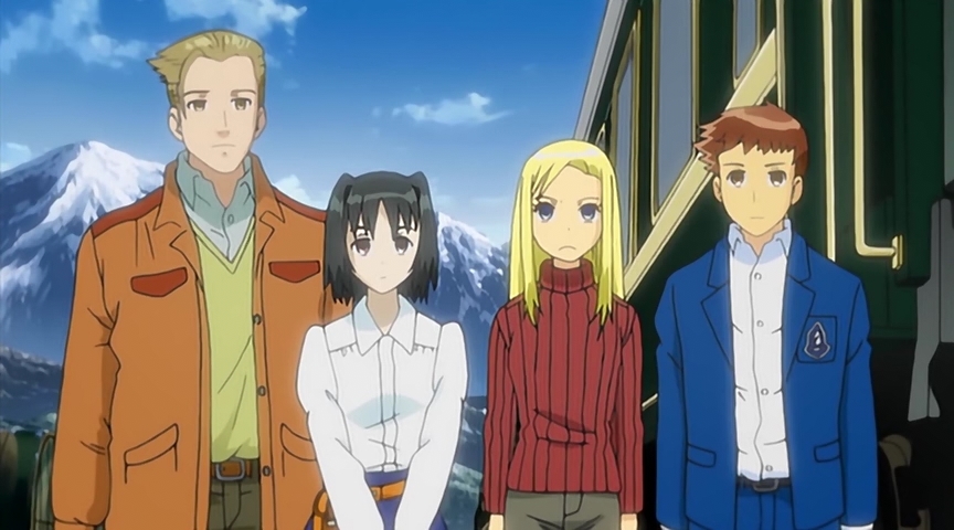 Таким образом, в первой половине у нас имеется 3 арки. Первая арка напоминает авантюрный сюжет Индианы Джонса (археология играет здесь важную роль). Правда, завязка очень медленная – сразу чувствуется рука автора Путешествия Кино. Но этот (для кого-то) недостаток компенсируется хорошо переданной атмосферой и некоторой ламповостью, приправленных замечательным музыкальным оформлением. Вторая арка – самая скучная – этакий детектив с погоней, какой-то тайной и заговором, только не детектив (даже хреновый) и с очень банальным секретиком в духе мультфильма «Анастасия». В сюжете всего аниме – чуть ли не самая важная арка, так как вводит ещё и четвёртого персонажа в компанию и очень хорошо раскрывает третьего – самого интересного персонажа из всей компашки. Третья арка представляет собой детектив в духе Агаты Кристи («Убийство в восточном экспрессе»). Наверное, самая интересная и интригующая арка.